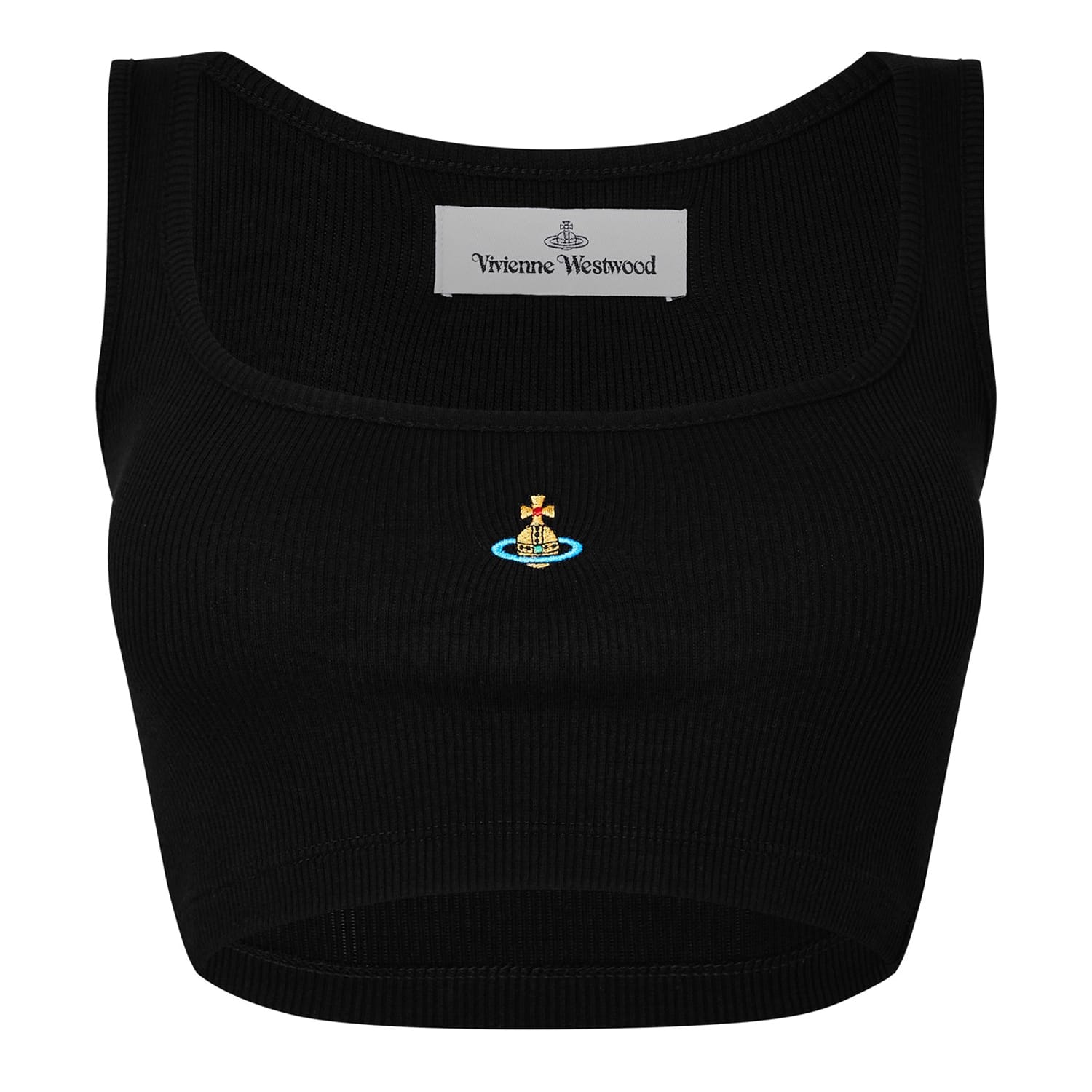 - With the iconic orb embroidery at the centre, this cotton bra is a nod to Westwood's visionary approach to merging tradition with innovation. Designed in a classic colourway, this cropped top effortlessly transitions from loungewear to a look suitable for evenings out - cementing its position as a mainstay favourite in your wardrobe.