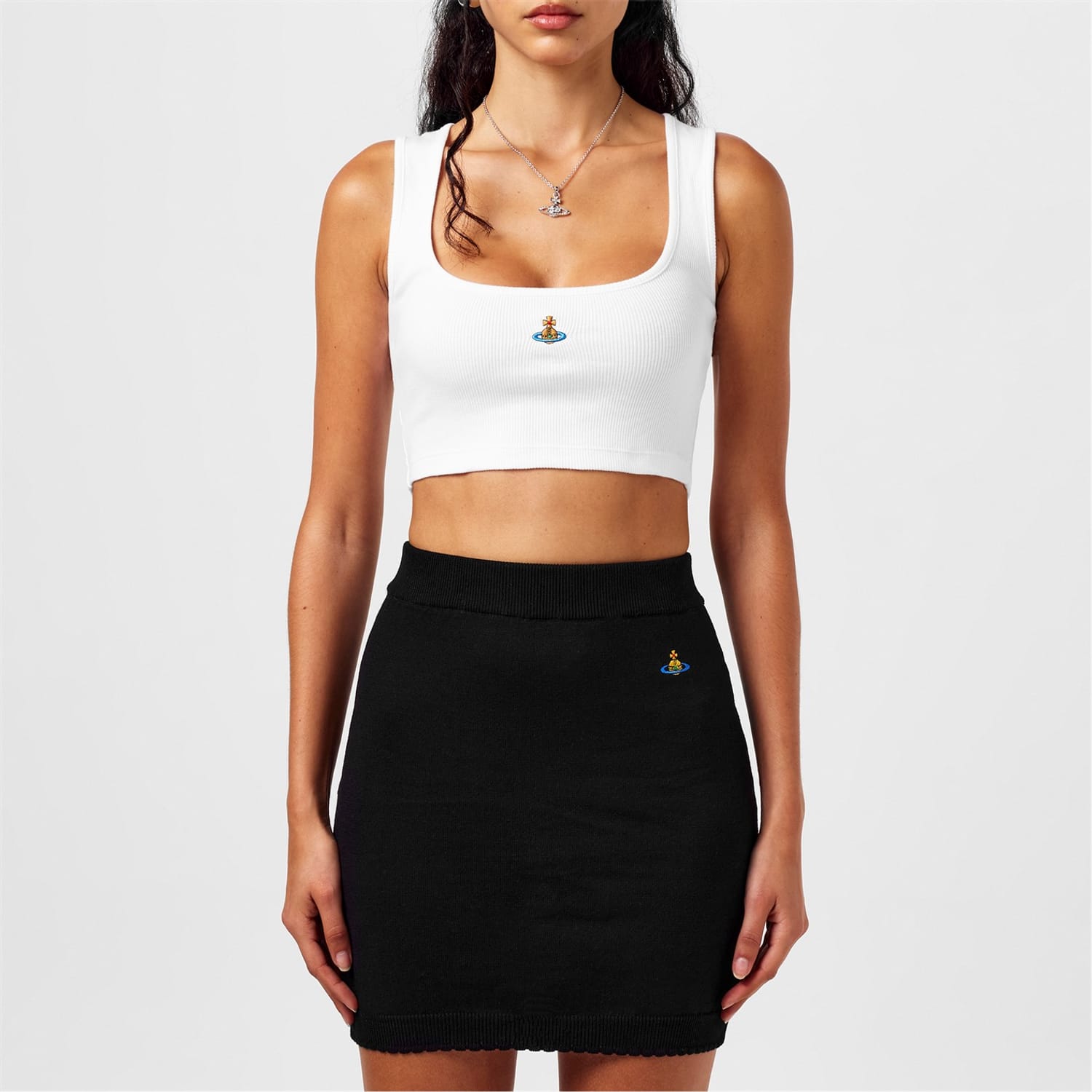 Designed for both casual and stylish occasions, the Vivienne Westwood Bea Bra Top is an elevated staple perfect for everyday wear. Crafted in Italy from a blend of organic and recycled cotton, this bralette features a ribbed-knit finish, artfully enhanced with added stretch for a supportive and close fit. The super cropped silhouette, coupled with a sleeveless design and a chic scoop neckline, seamlessly fuses timeless style with contemporary allure.
