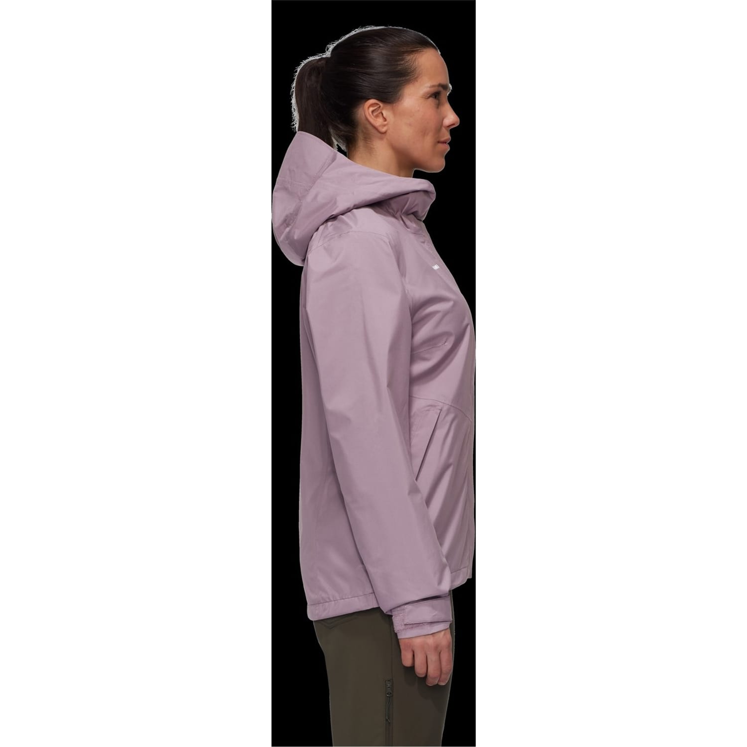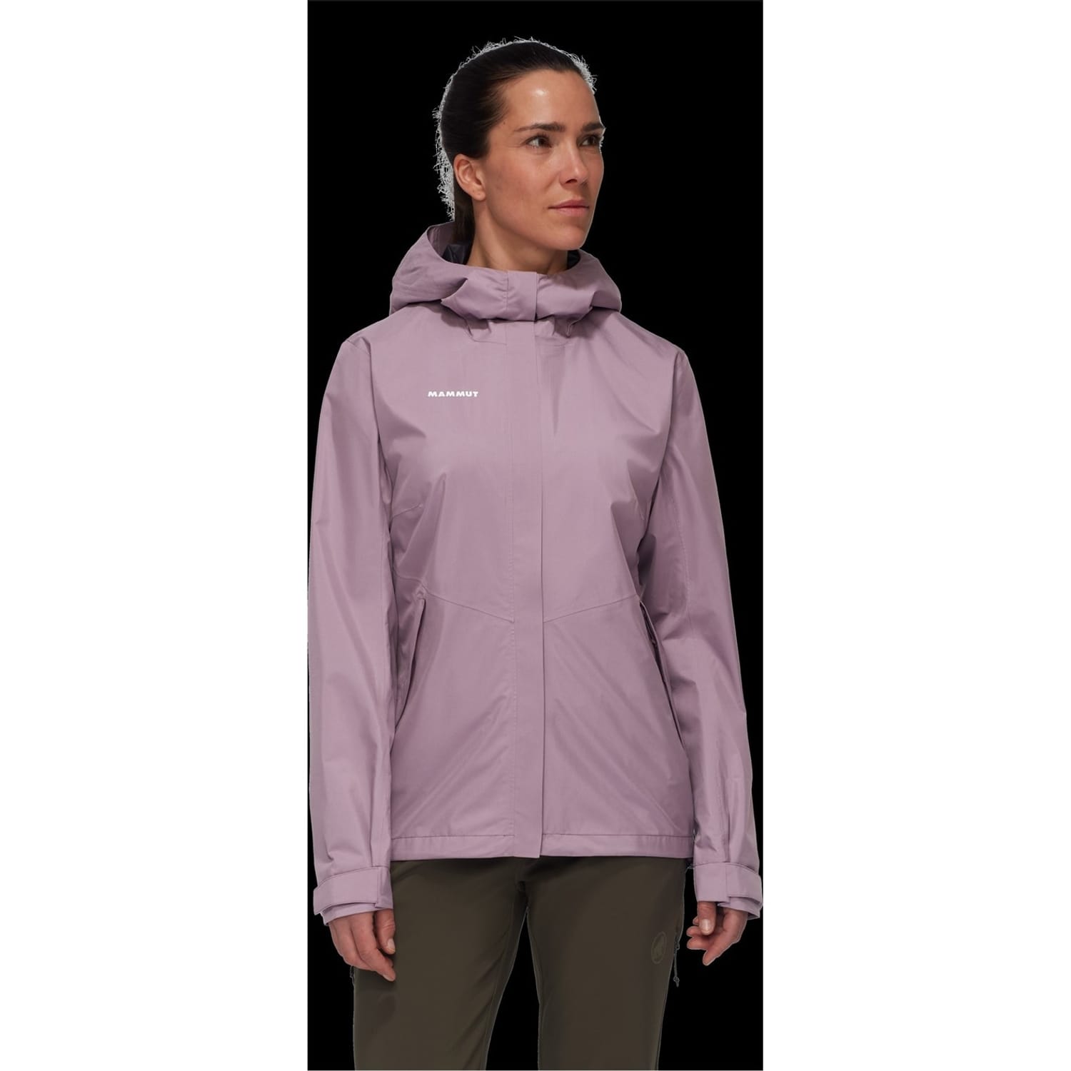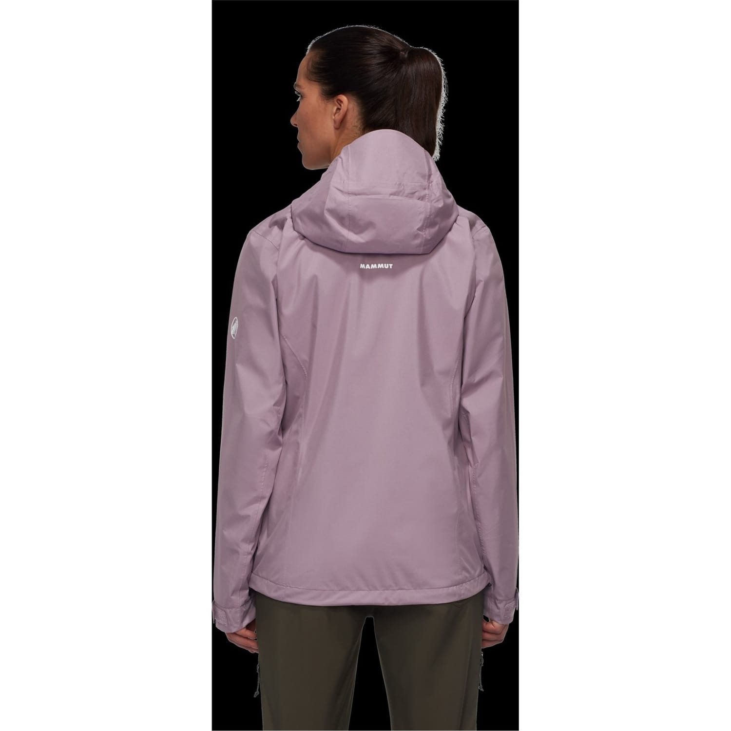 The Mammut jacket is designed for practicality and style. Featuring a hooded neckline and a zipper closure, it offers a regular fit with a straight hem. The jacket is water repellent, making it ideal for rainy conditions. It includes an elasticated cuff for added comfort and showcases a solid pattern with a logo embellishment for a subtle brand touch. -