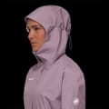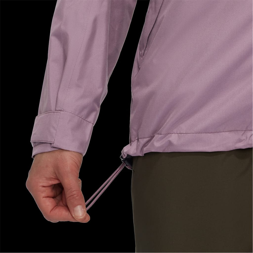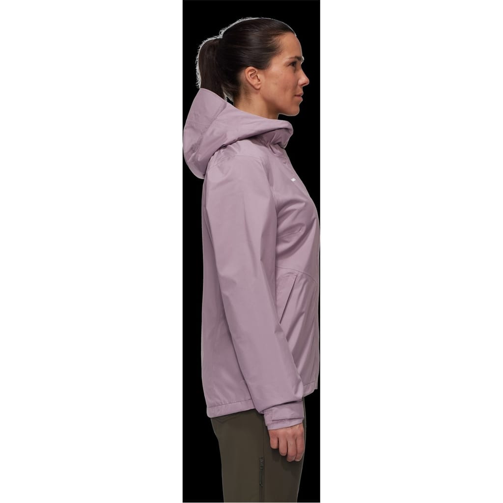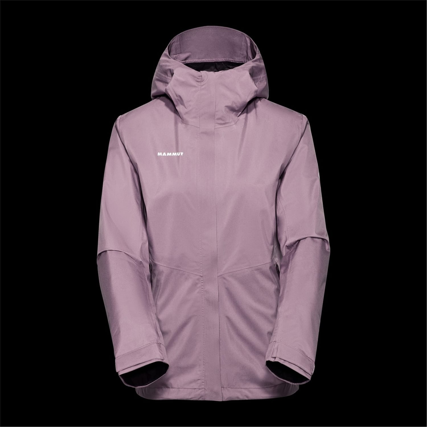The Mammut jacket is designed for practicality and style. Featuring a hooded neckline and a zipper closure, it offers a regular fit with a straight hem. The jacket is water repellent, making it ideal for rainy conditions. It includes an elasticated cuff for added comfort and showcases a solid pattern with a logo embellishment for a subtle brand touch. -