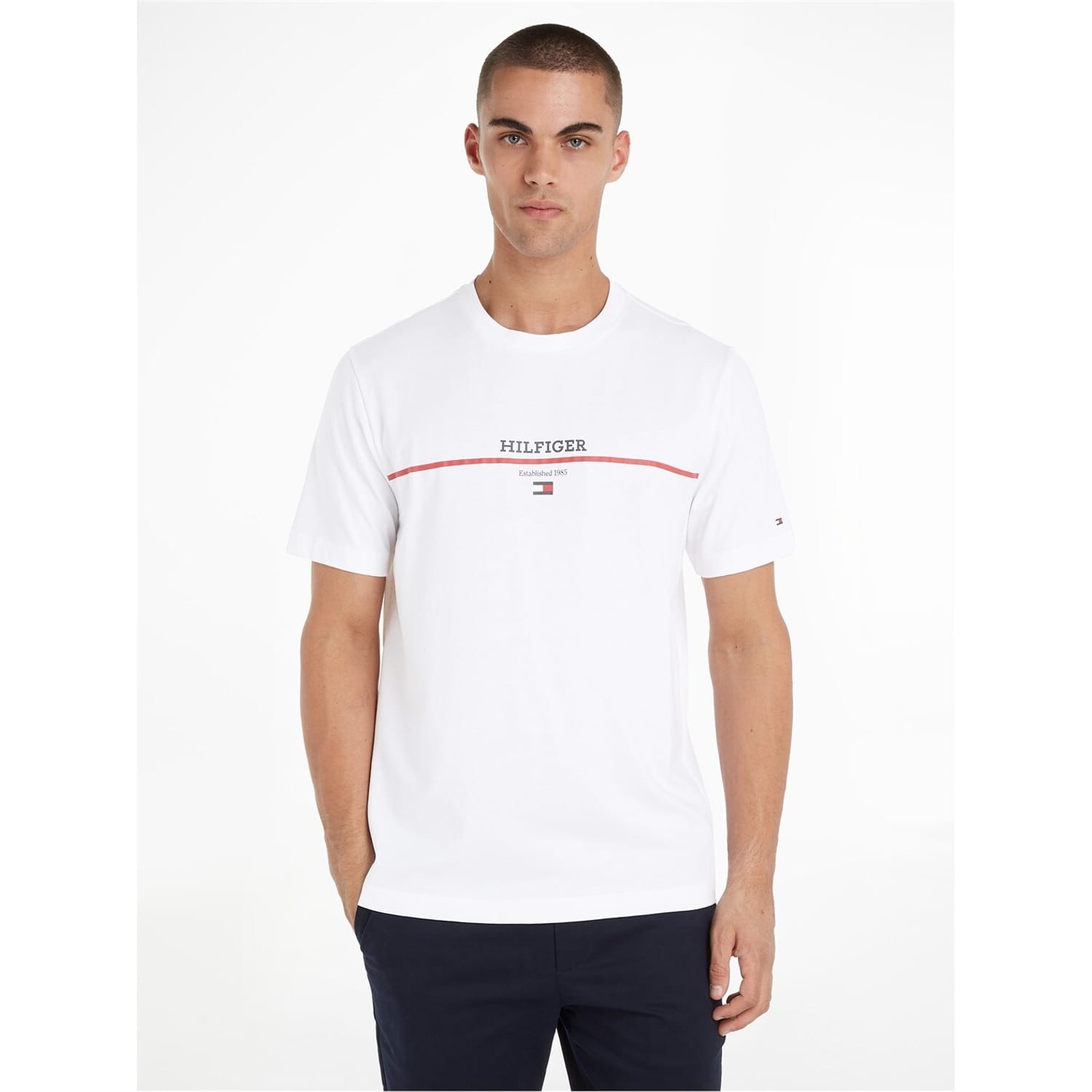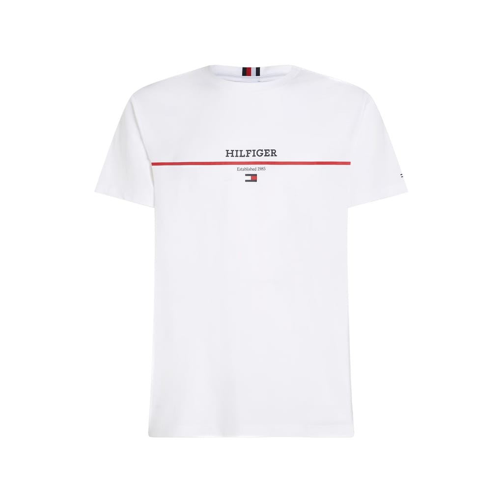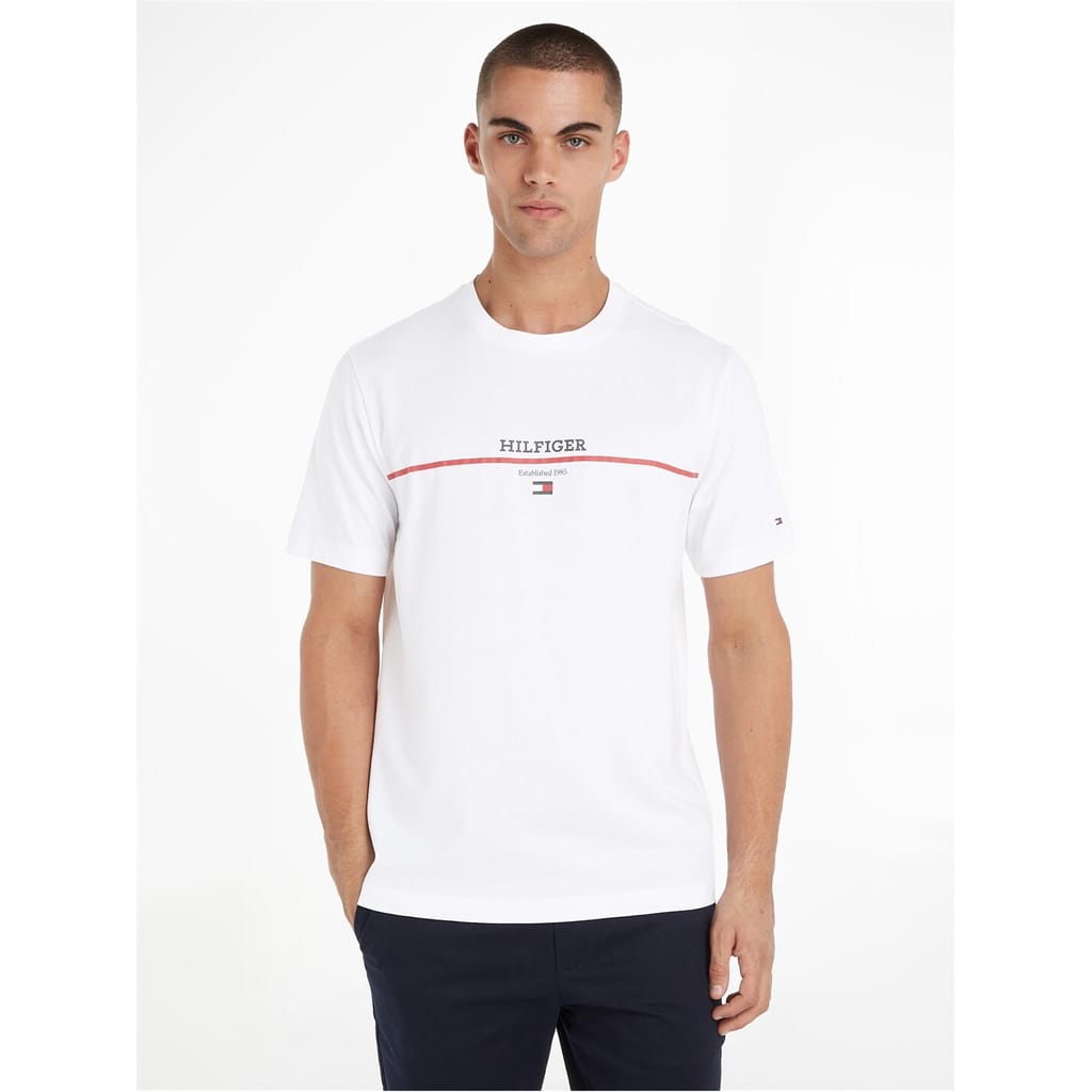 Find your style with this Cotton Logo T-shirt from Tommy Hilfiger, known for its classic American read-to-wear style. Hilfiger brings to you the essentials of the season. Crafted from 100% organic cotton, promising comfort and sustainability. Boasting a classic crew neck, straight hem and short sleeves, this t-shirt is perfect for those warmer seasons. The contrasting stripe adorning the chest adds a contemporary edge to this classic design, while the monotype date of the brand's establishment elevates this ensbale with a nod to the brand's humble beginning. Featuring the iconic Hilfiger logo proudly displayed on the chest, this exquisite garment embodies the essence of luxury. The pièce de résistance lies in the meticulous Tommy Hilfiger flag embroidery adorning the sleeve, symbolizing impeccable attention to detail and unwavering dedication to superior quality. This Cotton Logo T-shirt is a versatile masterpiece suited for any occasion, whether it be a casual weekend outing or a day -