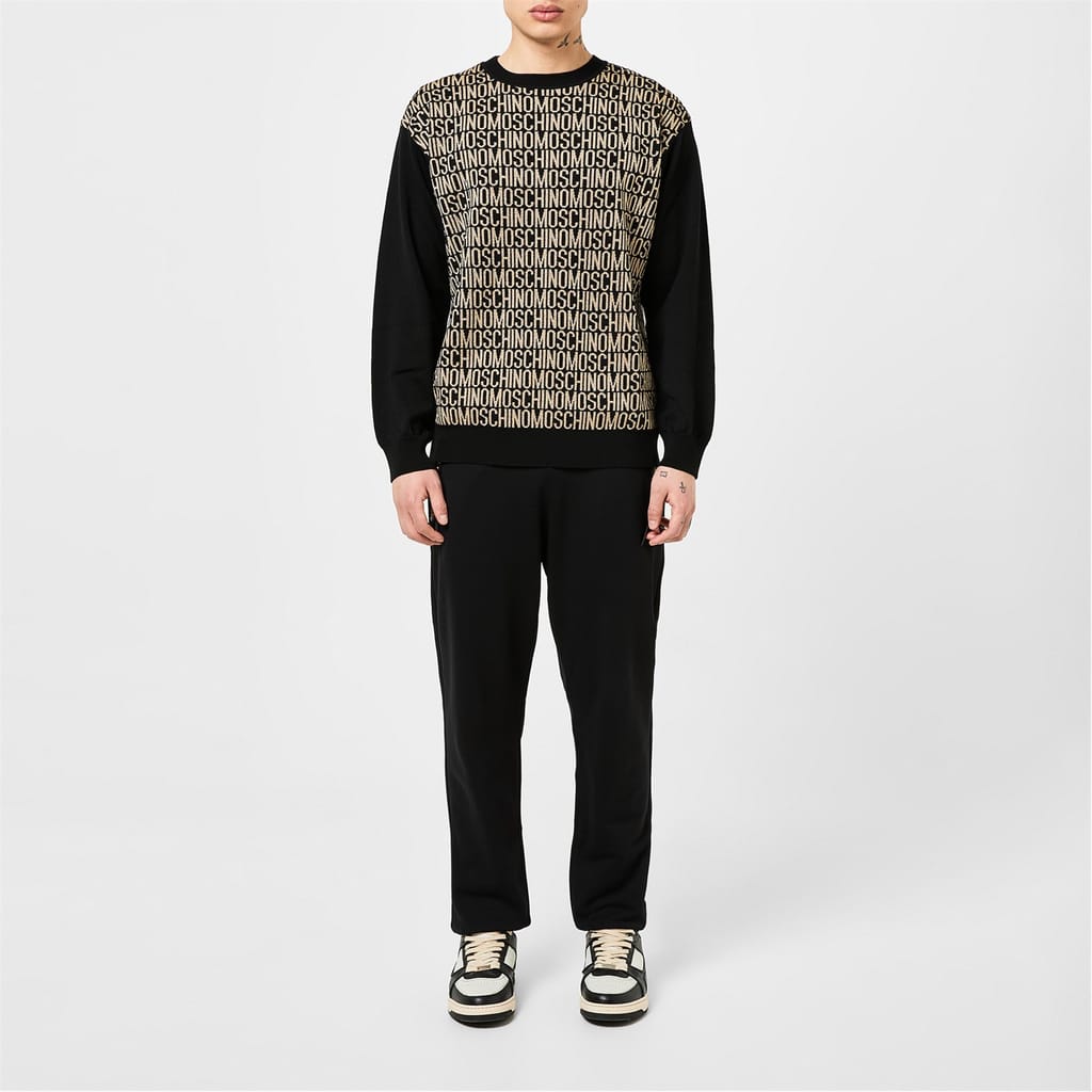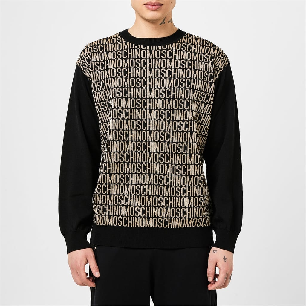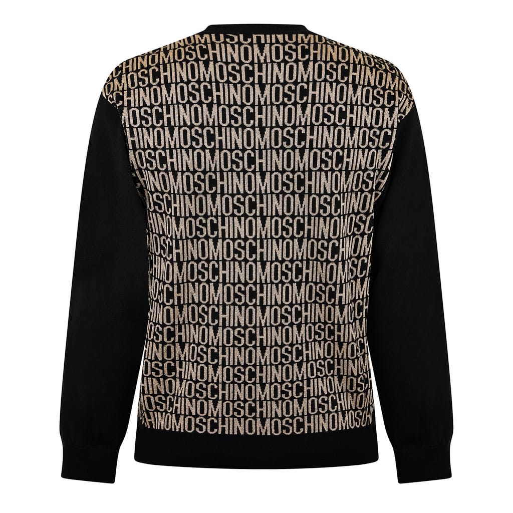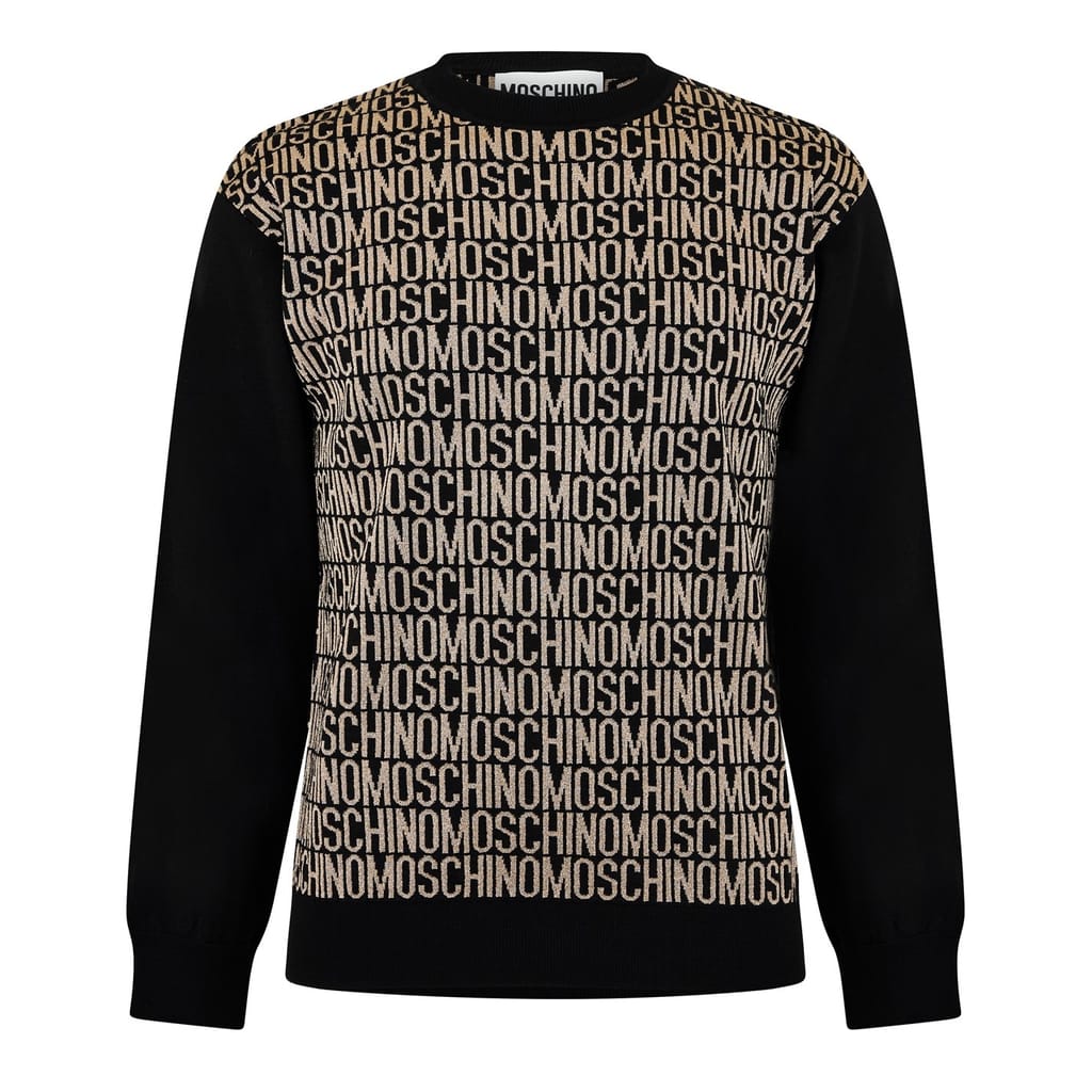This Moschino top features a crew neck and regular fit, offering a comfortable and stylish option for your wardrobe. The all-over logo pattern and lettering graphic add a distinctive touch, while the logo embellishment enhances its unique appeal. Perfect for those who appreciate bold branding and contemporary design. -