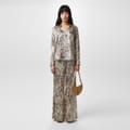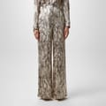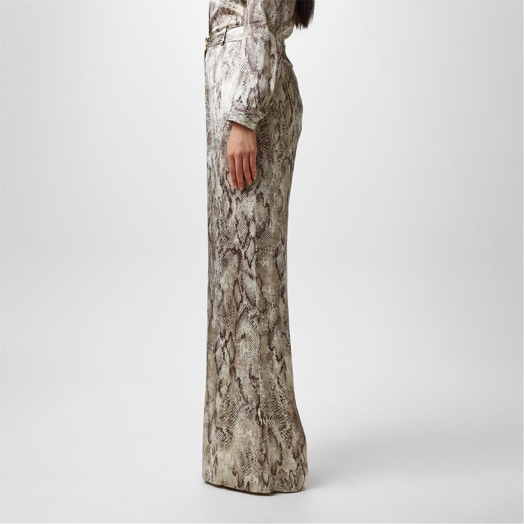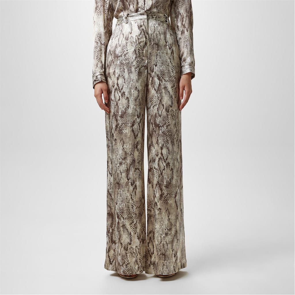 Discover the unique style of L'Agence trousers, featuring a striking snake pattern. These wide-leg pants offer a sophisticated look with a zip fly and button closure. The design is enhanced by practical pockets, making them both stylish and functional. Perfect for those seeking a distinctive addition to their wardrobe. -
