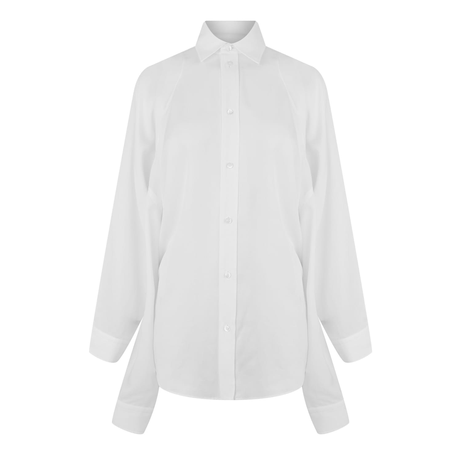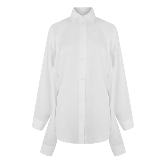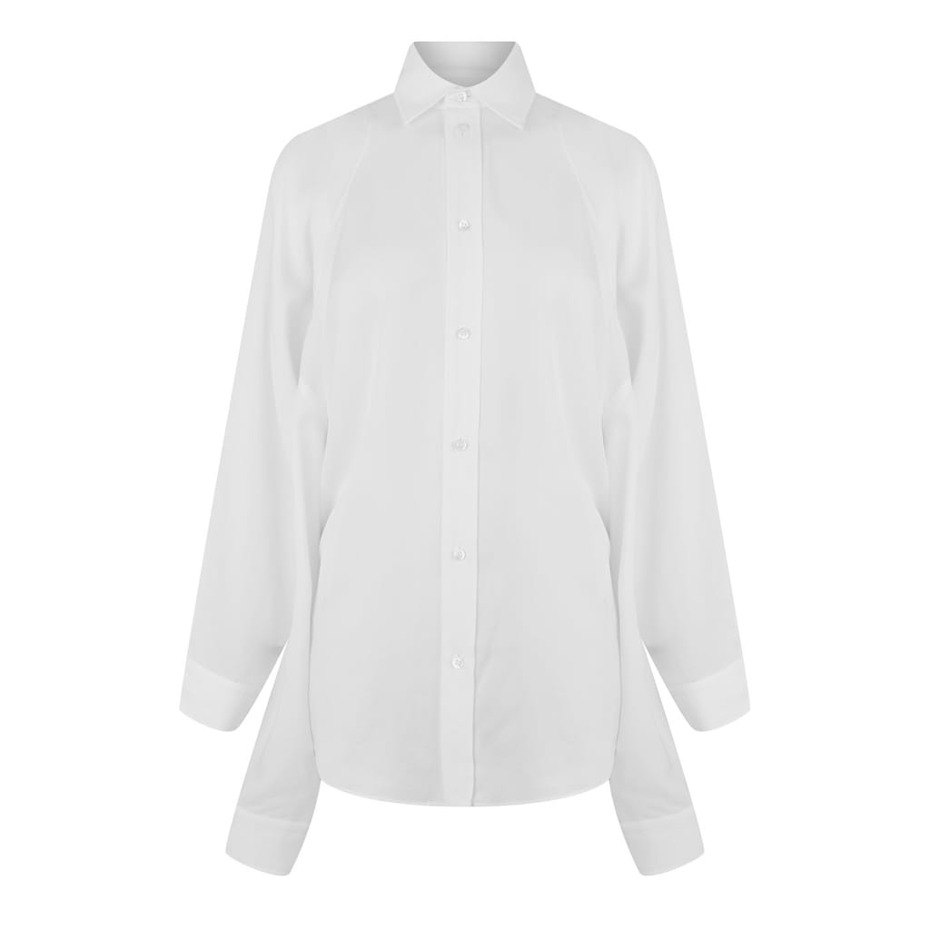 Balenciaga's Women's Long-Sleeve Plain Shirt embodies minimalism with precise tailoring and clean lines. The design offers many styling options with hidden button closures and structured cuffs.