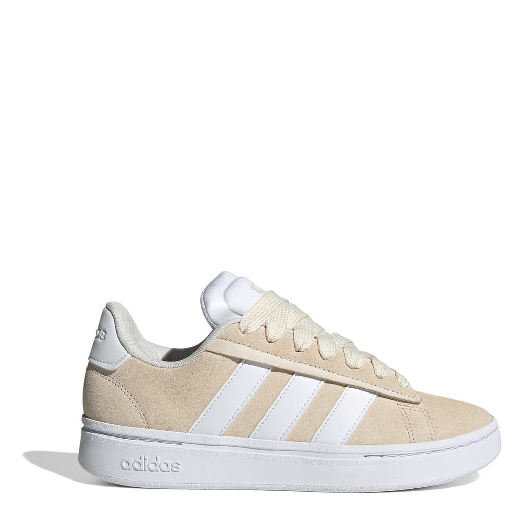 Introducing the Grand Court Alpha 00S Low-Top Trainers, an evolution in footwear for men. These tennis-inspired shoes blend chunkiness with modernity, featuring bold 3-Stripes and fat laces that enhance any look. Crafted from a mix of synthetics, leather, and rubber, they offer a regular fit for everyday comfort. The Cloudfoam technology provides an ultra-soft step with extra cushioning, making these shoes perfect for casual streetwear. Lace-up and experience the future of classic style. -