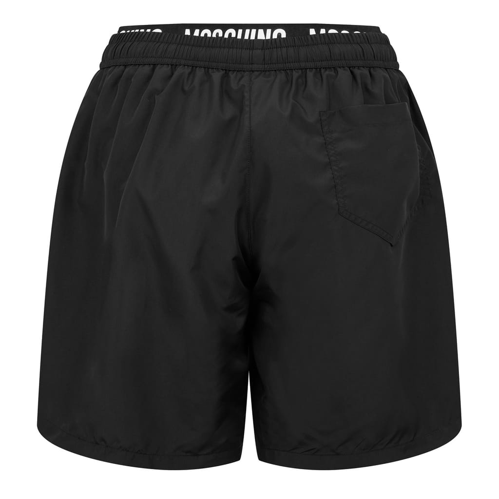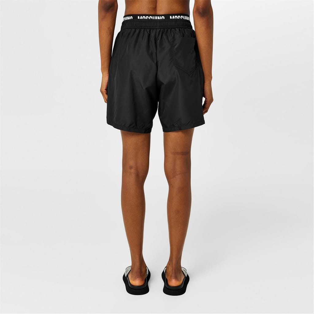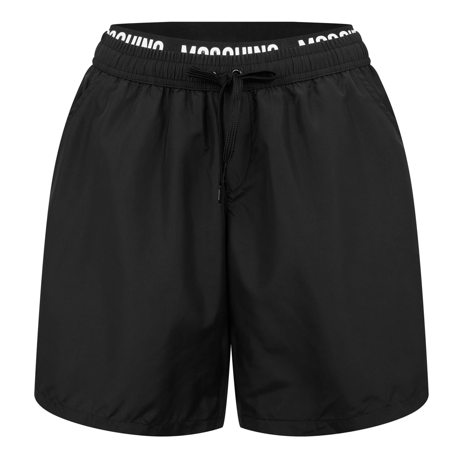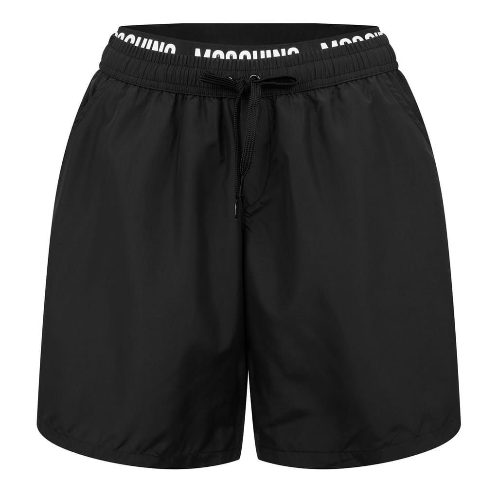 Dive into style with Moschino swimwear, featuring a swim bottom designed for swimming enthusiasts. This piece boasts a drawstring and elasticated waistband for a secure fit. The iconic logo embellishment and distinctive lettering graphic add a touch of flair, making it a standout choice for any swimming collection. -