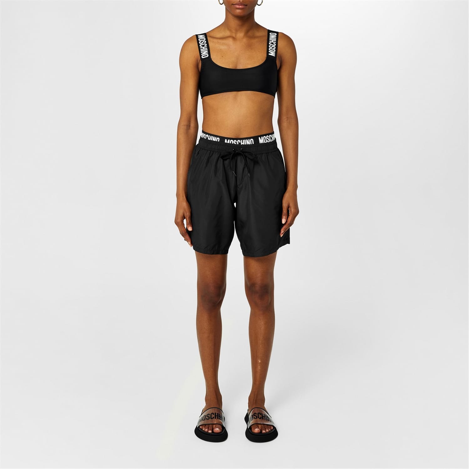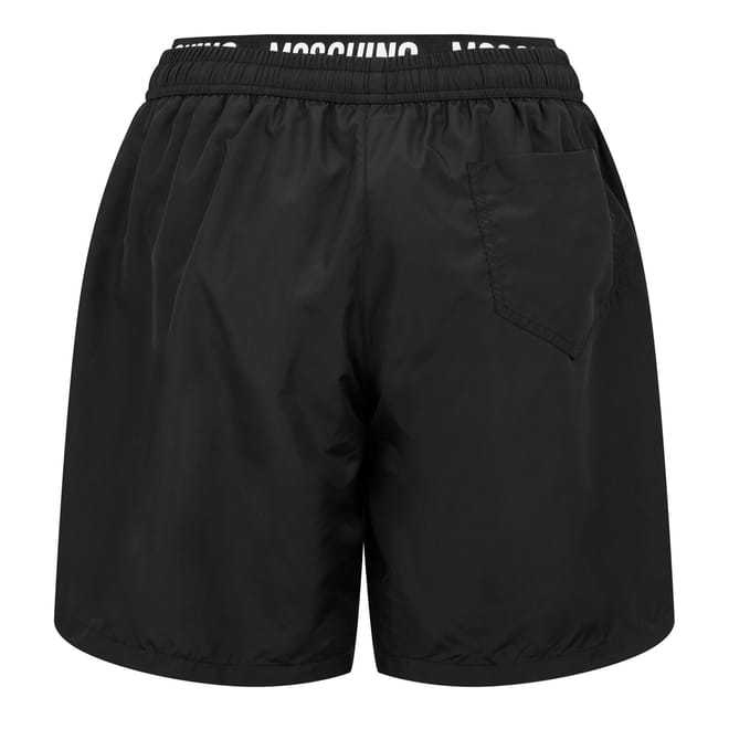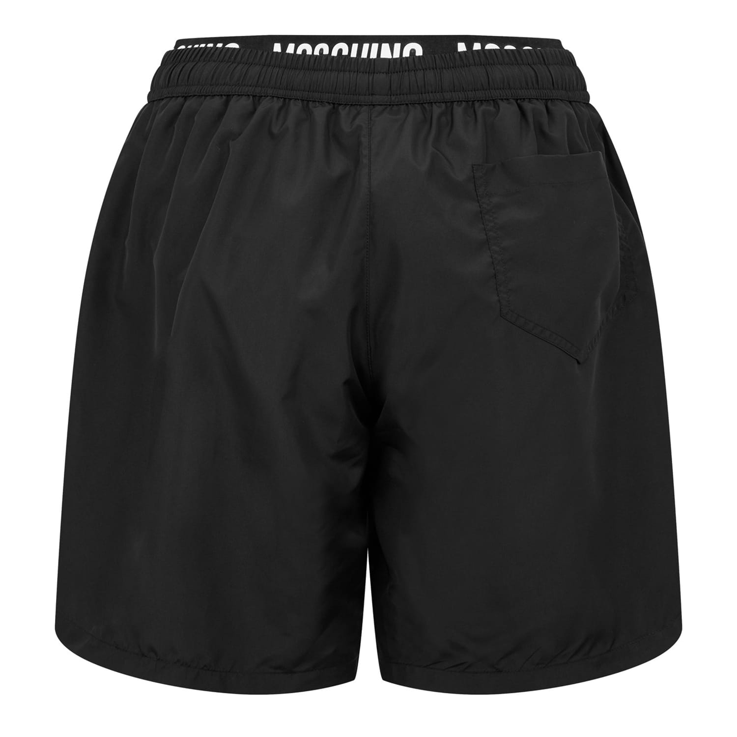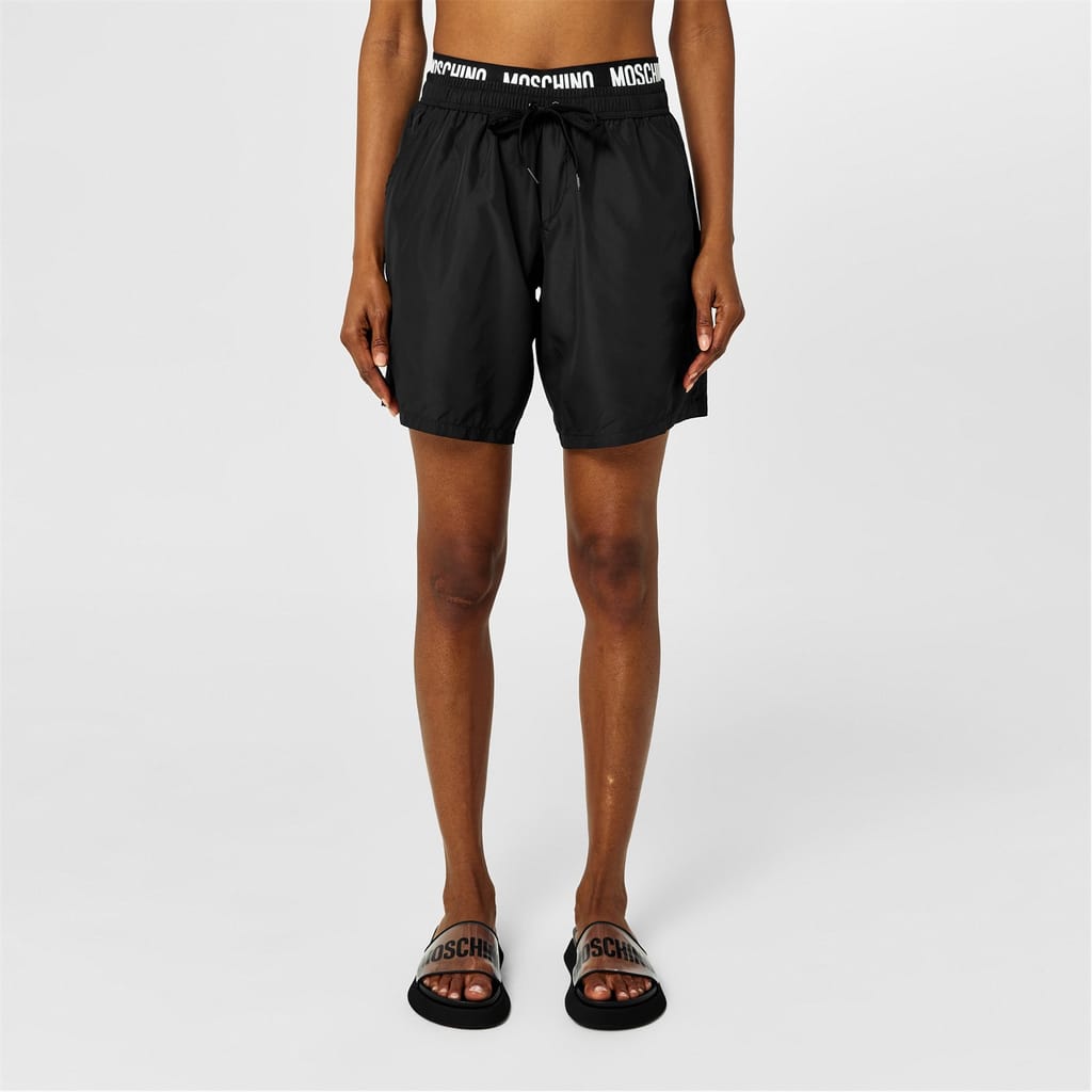 Dive into style with Moschino swimwear, featuring a swim bottom designed for swimming enthusiasts. This piece boasts a drawstring and elasticated waistband for a secure fit. The iconic logo embellishment and distinctive lettering graphic add a touch of flair, making it a standout choice for any swimming collection. -
