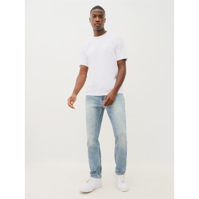 The Rocco Skinny Jean is day-to-night denim perfection. Cut in a clean wash, hyper stretch denim, this skinny fit men’s jean features sleek tonal stitching, tonal matte hardware, and a shorter 32 inseam. Finished with subtle horseshoe detailing across the back flap pockets. -