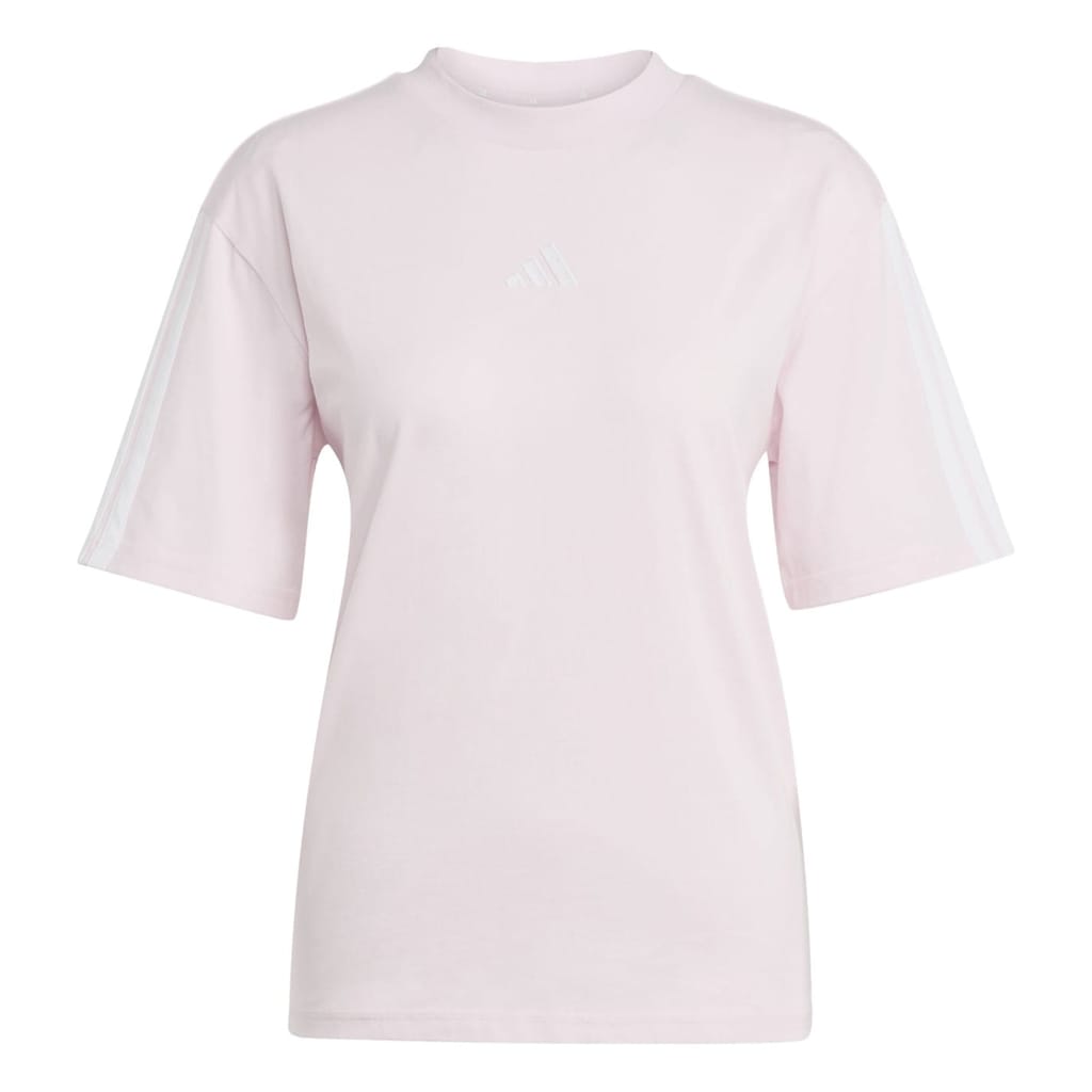 Get ready to inject some serious style and energy into your off-duty wardrobe with the adidas 3 Stripe T-Shirt. Made for those who never settle for ordinary, this t-shirt is a must-have for any active fashionista looking to make a statement. Crafted from soft and durable cotton, it promises comfort that lasts all day long—perfect for when you're on the go or just kicking back with friends. The design of this timeless classic is anything but basic. With its crew neck, short sleeves, and straight hem, it exudes a traditional vibe that never goes out of style. But here's where the magic happens – adidas's iconic 3 stripe motif adorns the shoulders and sleeves, giving it that extra touch of sporty flair that sets it apart from the rest. And of course, it's completed with the signature adidas branding, because we know you deserve only the best. 100% Cotton. Machine washable, follow care instructions. -