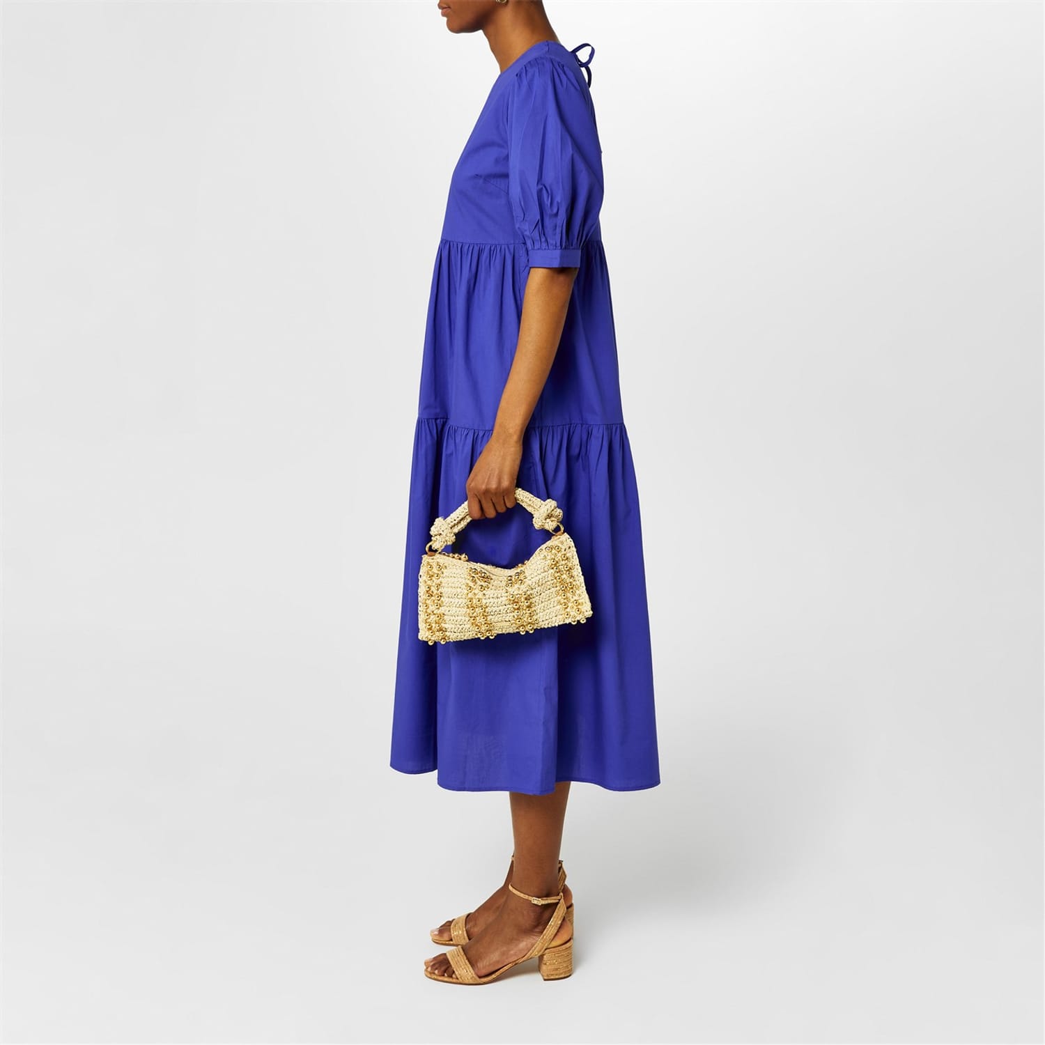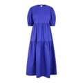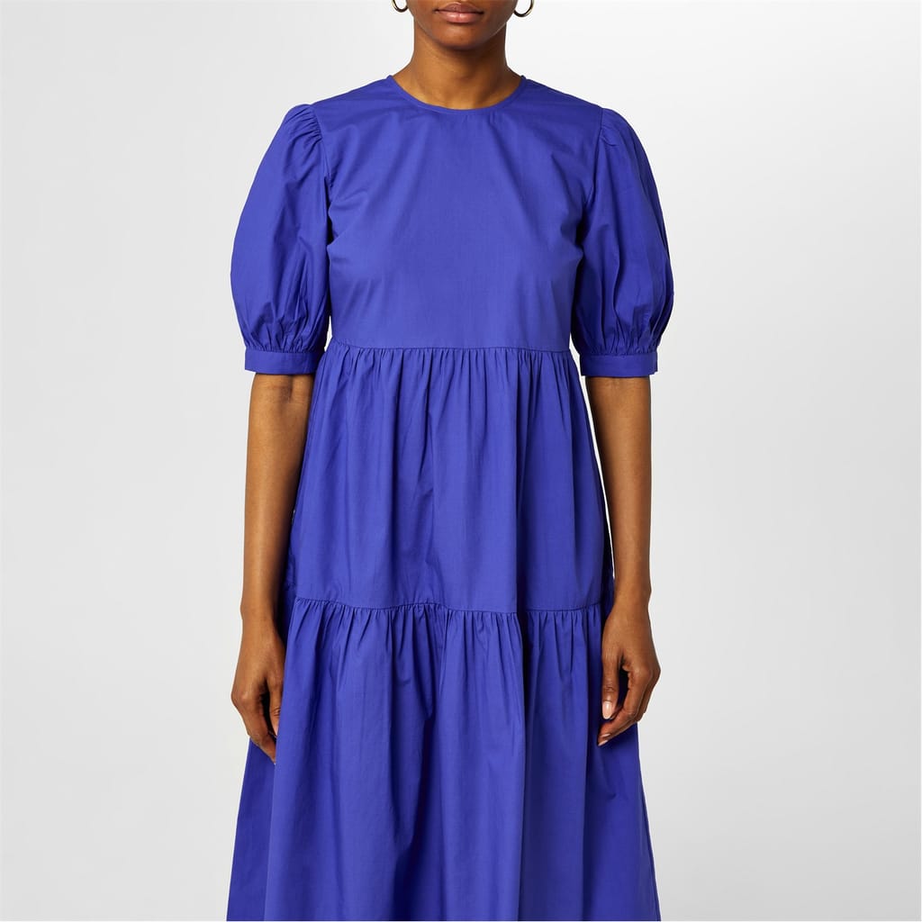This charming midi dress by Nobody Child is perfect for children. Featuring a crew neck and smocked embellishments, it offers both style and comfort. The three-quarter puff sleeves add a touch of elegance, while the solid pattern and straight hem provide a classic look. -
