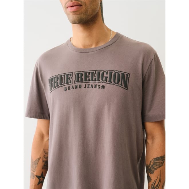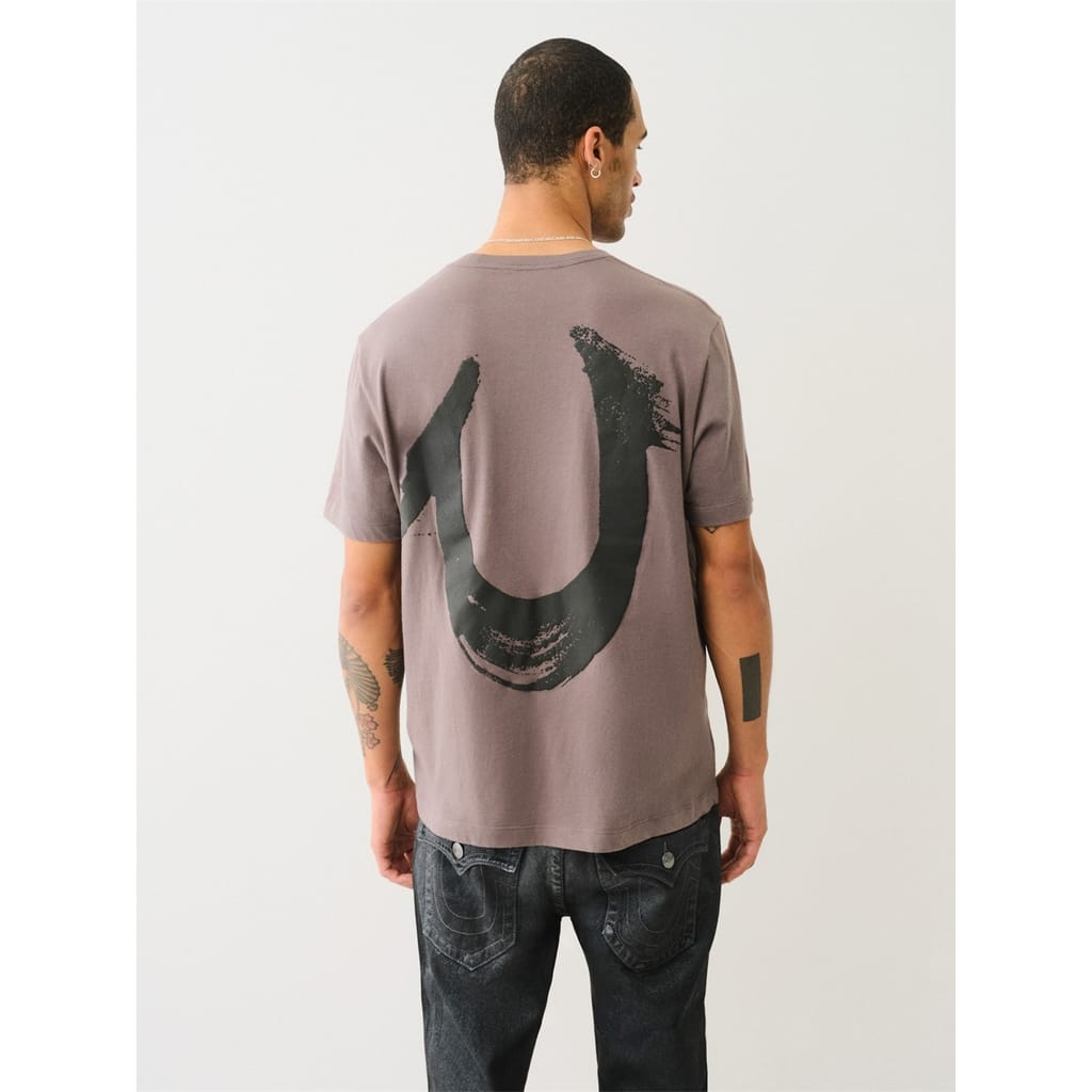 The Painted Horseshoe Relaxed Tee is a true must have. Designed from comfy 100% cotton, this short sleeve men's t-shirt features a crewneck and boxy relaxed fit. Finished with our classic True Religion logo across the front and a painted horseshoe graphic across the back. -
