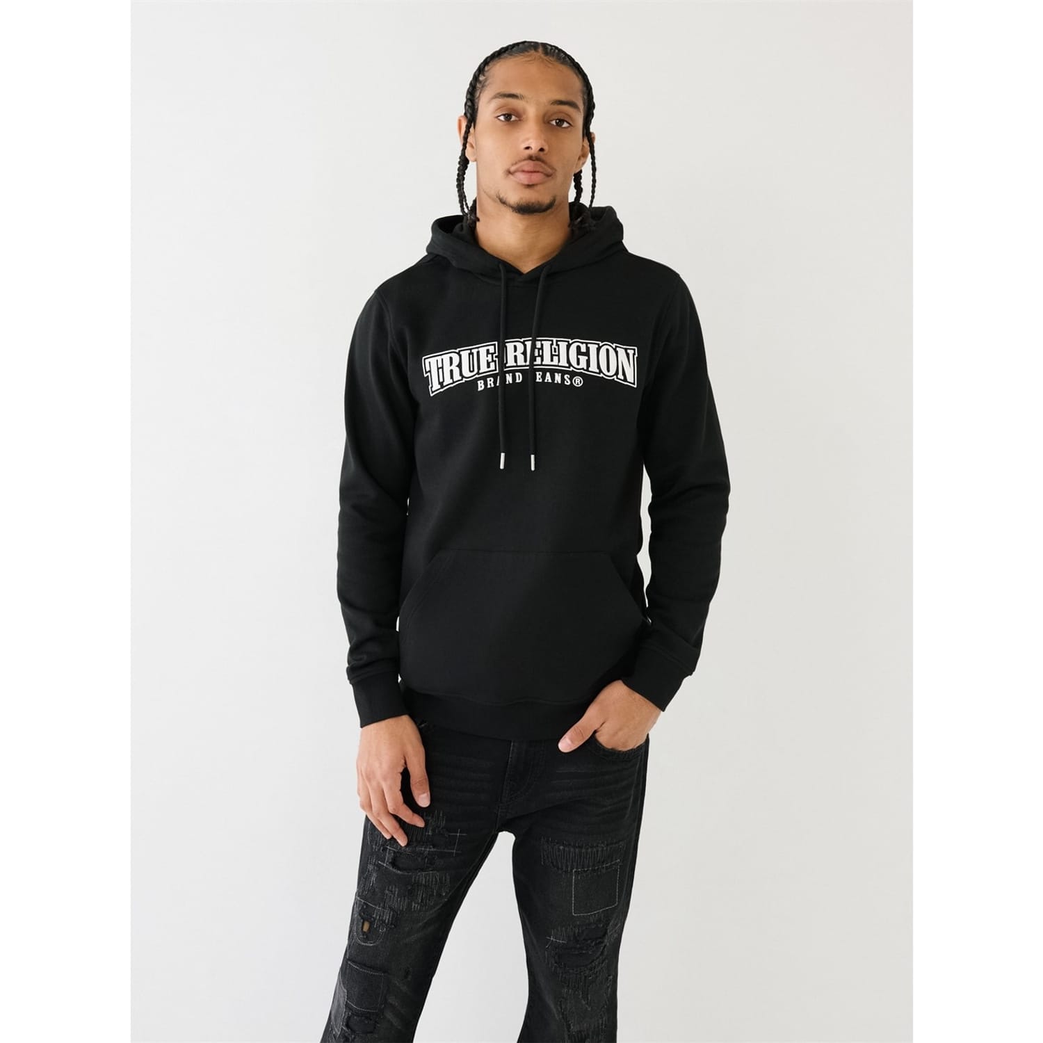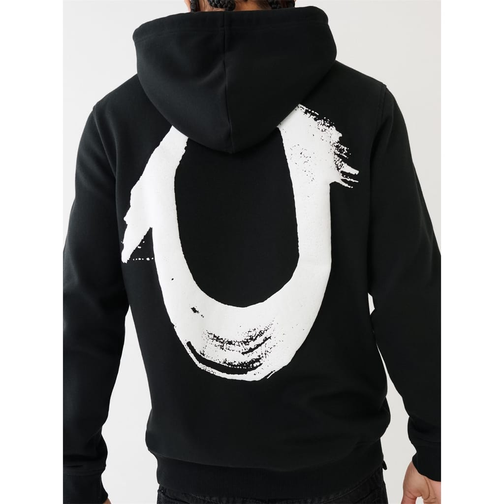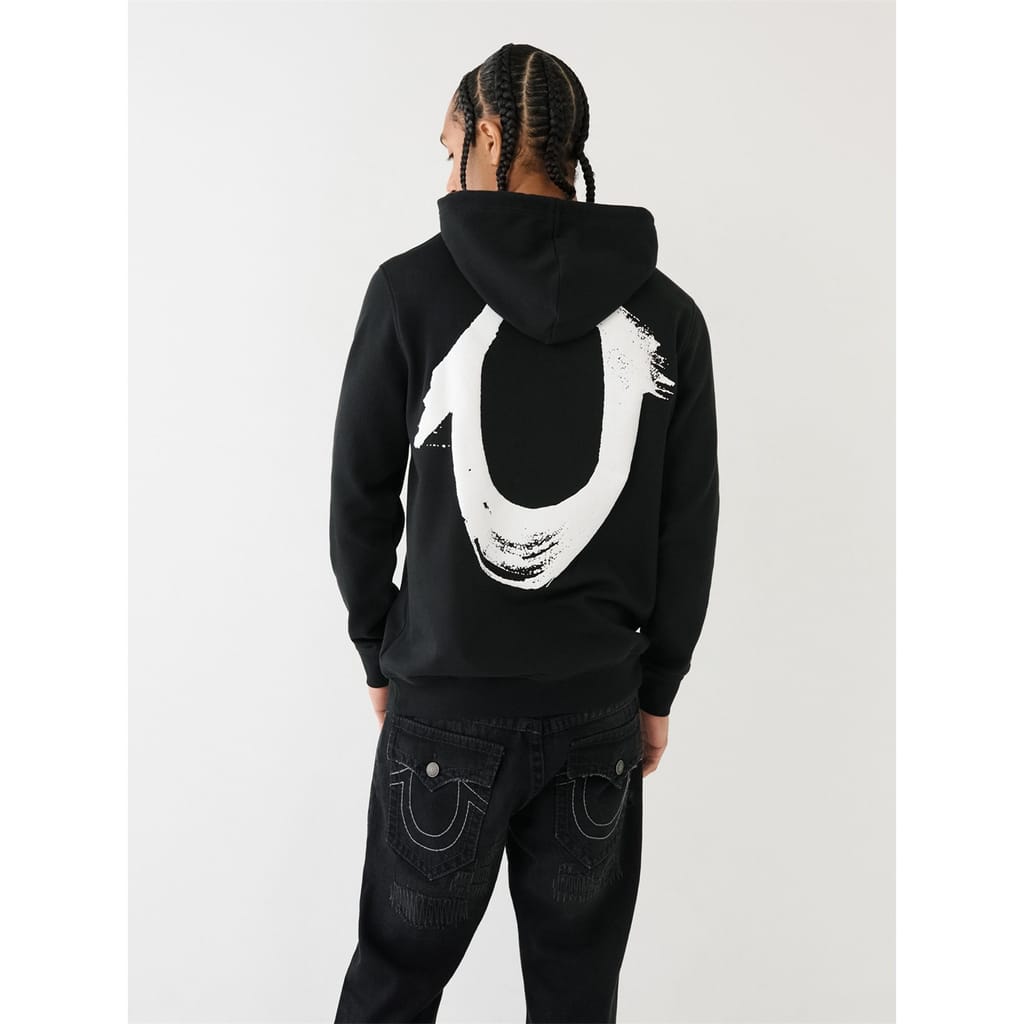 The Painted Horseshoe Puff Print Hoodie is perfect for going out or lounging out. Crafted from a cotton-blend fabrication, this hoodie features a hood, front True Religion logo, and long sleeves. Finished with a back painted horseshoe puff paint graphic -