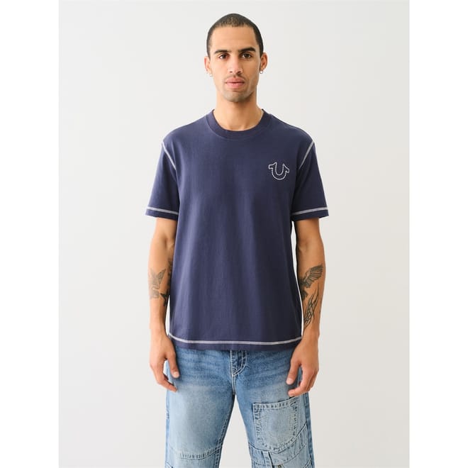 Upgrade your everyday look with the Big T Horseshoe Tee. Crafted from soft cotton fabrication, this men’s T-shirt features a crew neck, short sleeves, and contrast single needle trim. Finished with a chest horseshoe logo applied with Big T stitching. -