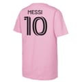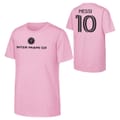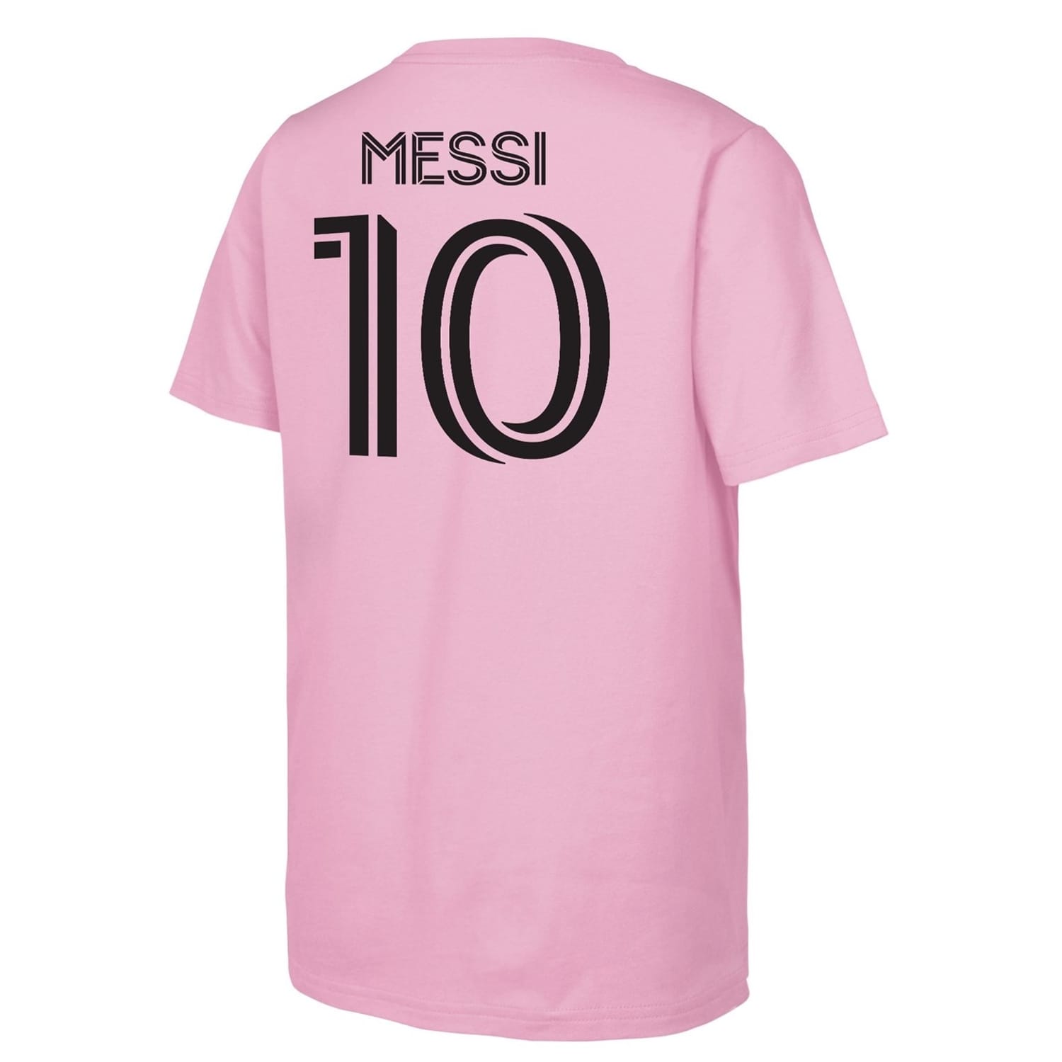 - Featuring short sleeves and a rounded neckline to help achieve a classic look that is both stylish and practical, the soft pink colourway adds a distinctive appearance that also matches the 2024 season's home kit. The t-shirt is complete with Messi and the number 10 printed to the back and Inter Miami detailing to the front.