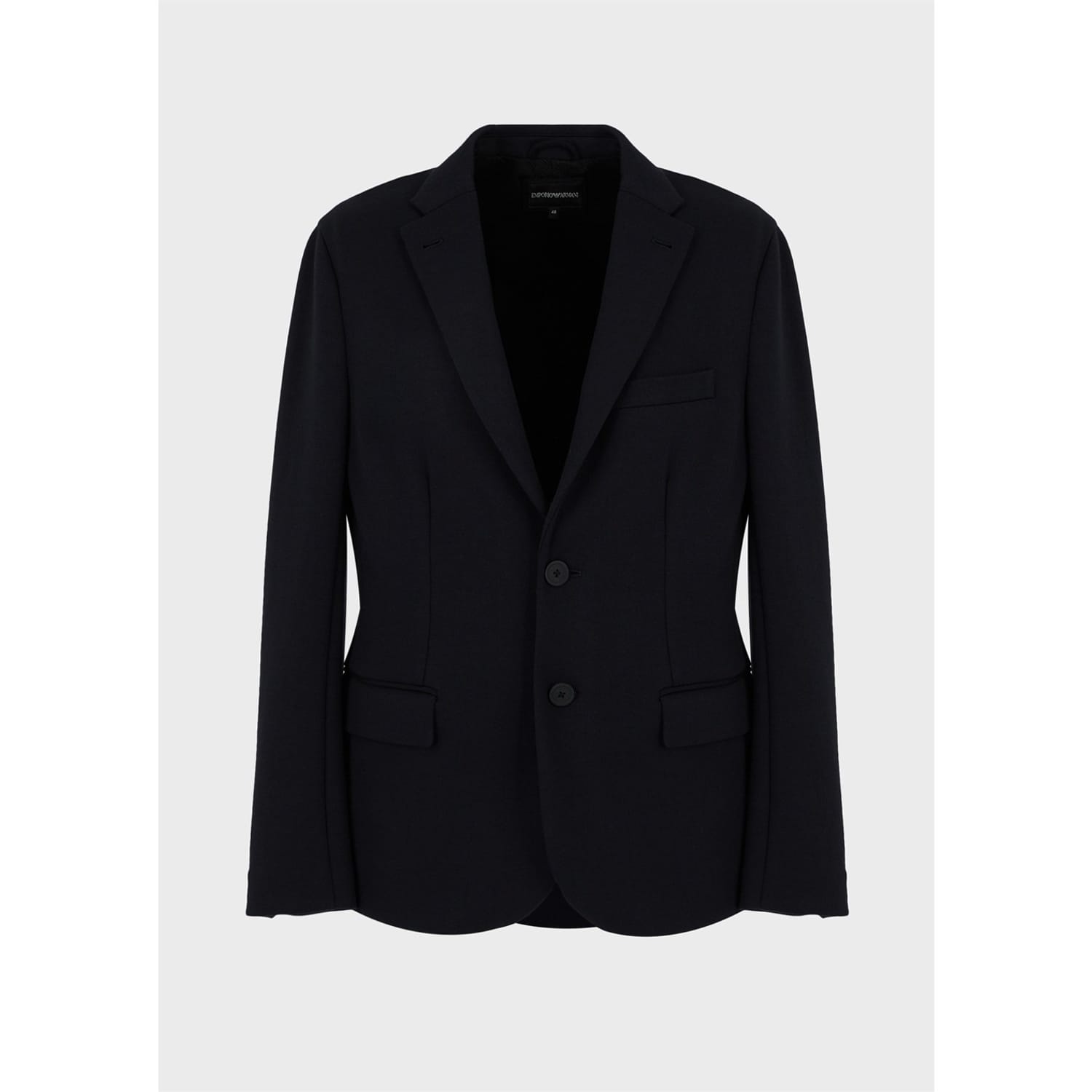 Introducing the Emporio Armani EA7 blazer jacket, a refined addition to your workwear collection. This jacket features a notched neck and a button closure, offering a classic and polished look. Designed with a regular fit, it ensures comfort and style. The solid pattern adds to its timeless appeal, making it a versatile choice for any professional setting. -
