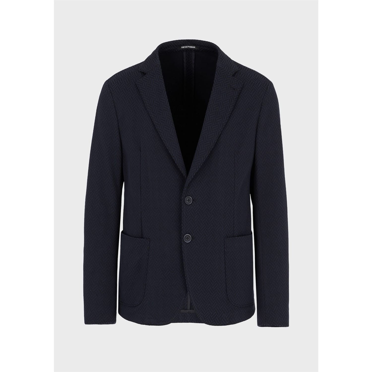 This Emporio Armani EA7 blazer jacket from the workwear collection is a sophisticated choice for professional settings. Featuring a notched neck and a geometric pattern, it offers a regular fit and is designed with a button closure for a classic look. -