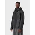 This Emporio Armani EA7 hybrid shell jacket features a hooded neckline and a solid pattern. With a relaxed fit, it offers a comfortable wear. The jacket includes a zipper closure and showcases an embroidered logo embellishment, making it a stylish yet functional addition to your wardrobe. -