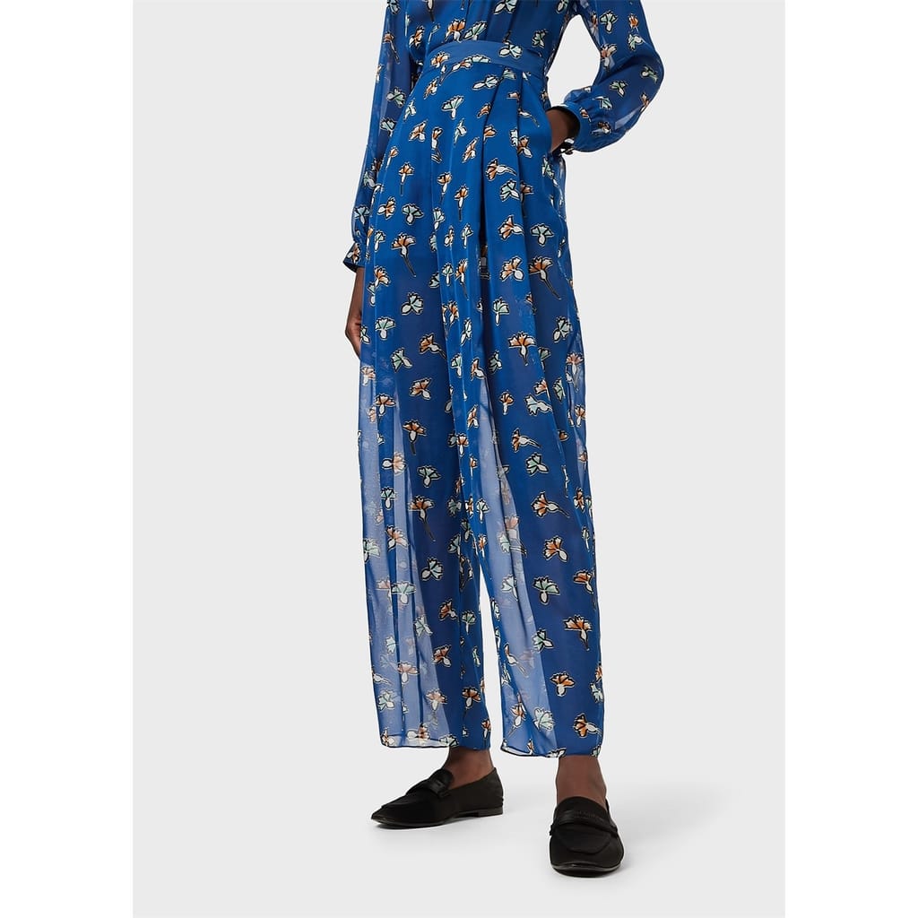 Discover the elegance of the Emporio Armani EA7 wide leg trousers. This knit ensemble combines a floral pattern with a trousers style, offering a chic and contemporary look. Perfect for those who appreciate the fusion of comfort and sophistication, this trousers stand out with its unique design elements. -