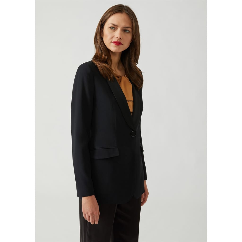 Emporio Armani's Women's Designer Blazer features classic Italian tailoring. The structured design offers a defined profile with the brand's characteristic quality, suited for professional settings.