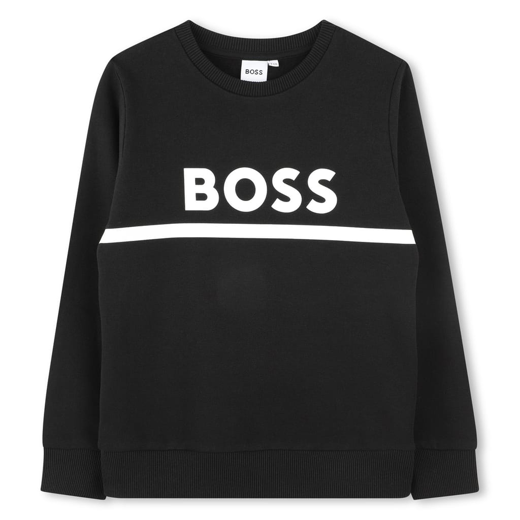 Meet the Logo Crew Neck Sweatshirt, the perfect addition to your young one's wardrobe from Boss. Crafted from a soft material that provides exceptional comfort and versatility, allowing your little one to wear it for extended periods without any discomfort. This sweatshirt boasts a classic crew neck design, coupled with ribbed hem and sleeves that provide a snug, comfortable fit. The dropped shoulder adds an element of relaxed style, perfect for any casual occasion.