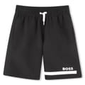 - Available in different colourways so your little one can truly express their individuality. The iconic logo print on the left leg, accented by a characteristic stripe, adds a touch of designer flair, setting these shorts apart as a symbol of luxury and refinement. These Logo Print Shorts from Boss are the epitome of versatile elegance, offering the perfect combination of comfort and style. Whether it’s a leisurely day in the park or a family gathering, these shorts effortlessly enhance any sophisticated yet laid-back ensemble
