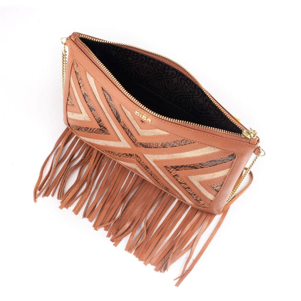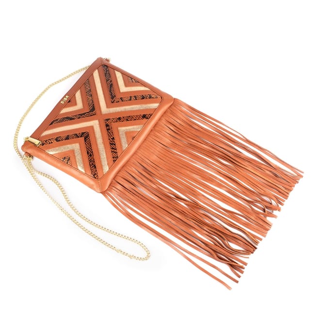 Elevate your accessory game with the Biba Fringe Chevron Pouch, a stunning piece that perfectly marries style and practicality. Crafted from premium leather, this pouch features eye-catching chevron panels and a mix of metallic leather, adding a touch of modern interest. The fringe detailing along the bottom adds a playful, on-trend twist. Designed for versatility, the detachable chain strap allows you to carry it as a clutch or over the shoulder. The zip-top closure ensures your essentials are secure, while the internal card holder keeps you organised on the go. -