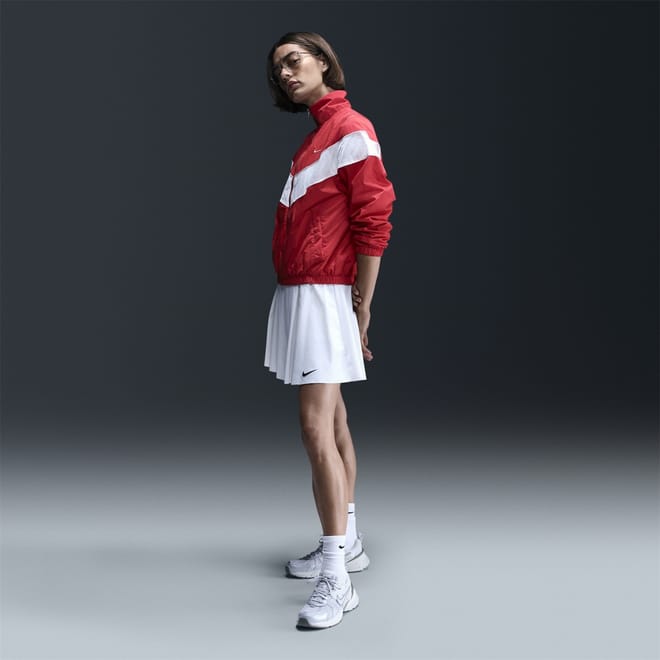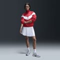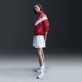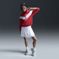 This Nike sweatshirt features a high collar and a stylish color block pattern. Designed with a convenient front zipper closure, three-quarter raglan sleeves, and a regular fit, it offers comfort and ease of movement. The elasticated cuffs add a functional touch, while the logo embellishment provides a distinctive finish. -