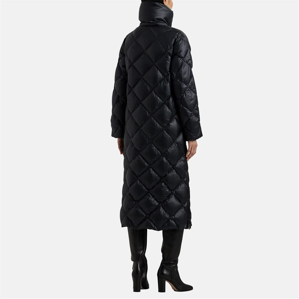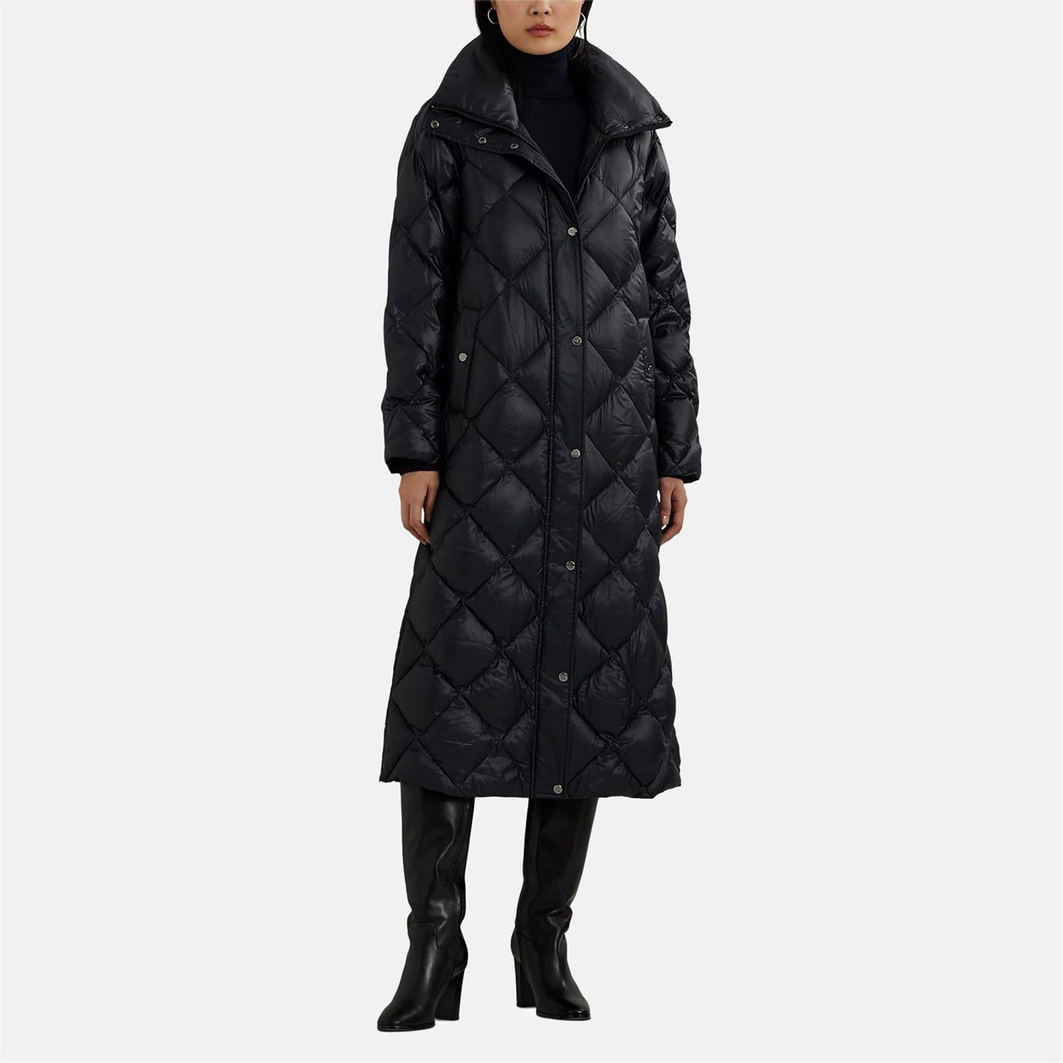 Discover the Lauren by Ralph Lauren puffer jacket, showcasing a solid design with a high collar and relaxed fit. This stylish piece features a snap button closure and practical pockets, making it a versatile addition to your wardrobe. Perfect for providing warmth and comfort, this puffer coat blends functionality with timeless style. -