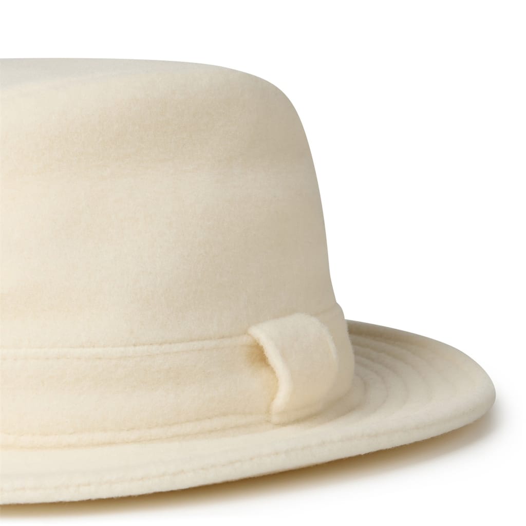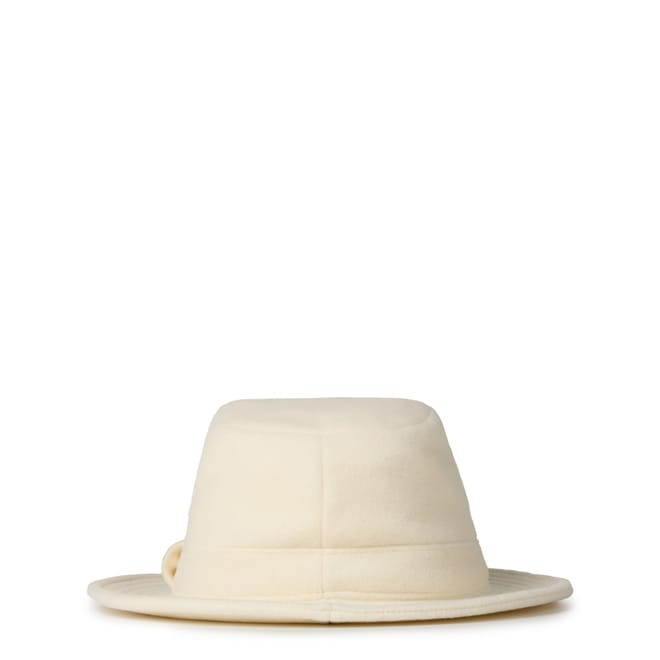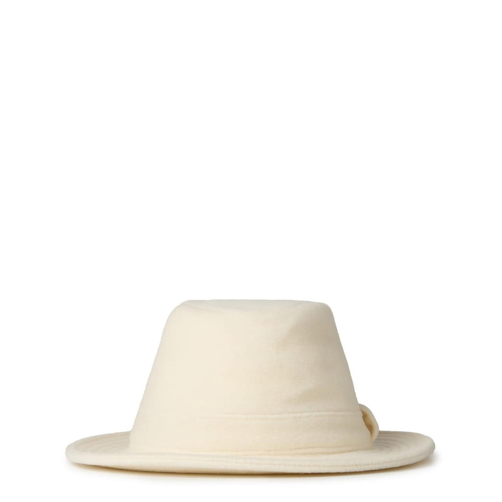 The Horse Trilby Hat from Yohji Yamamoto features sculptural lines and a form that embodies the designer's characteristic style.