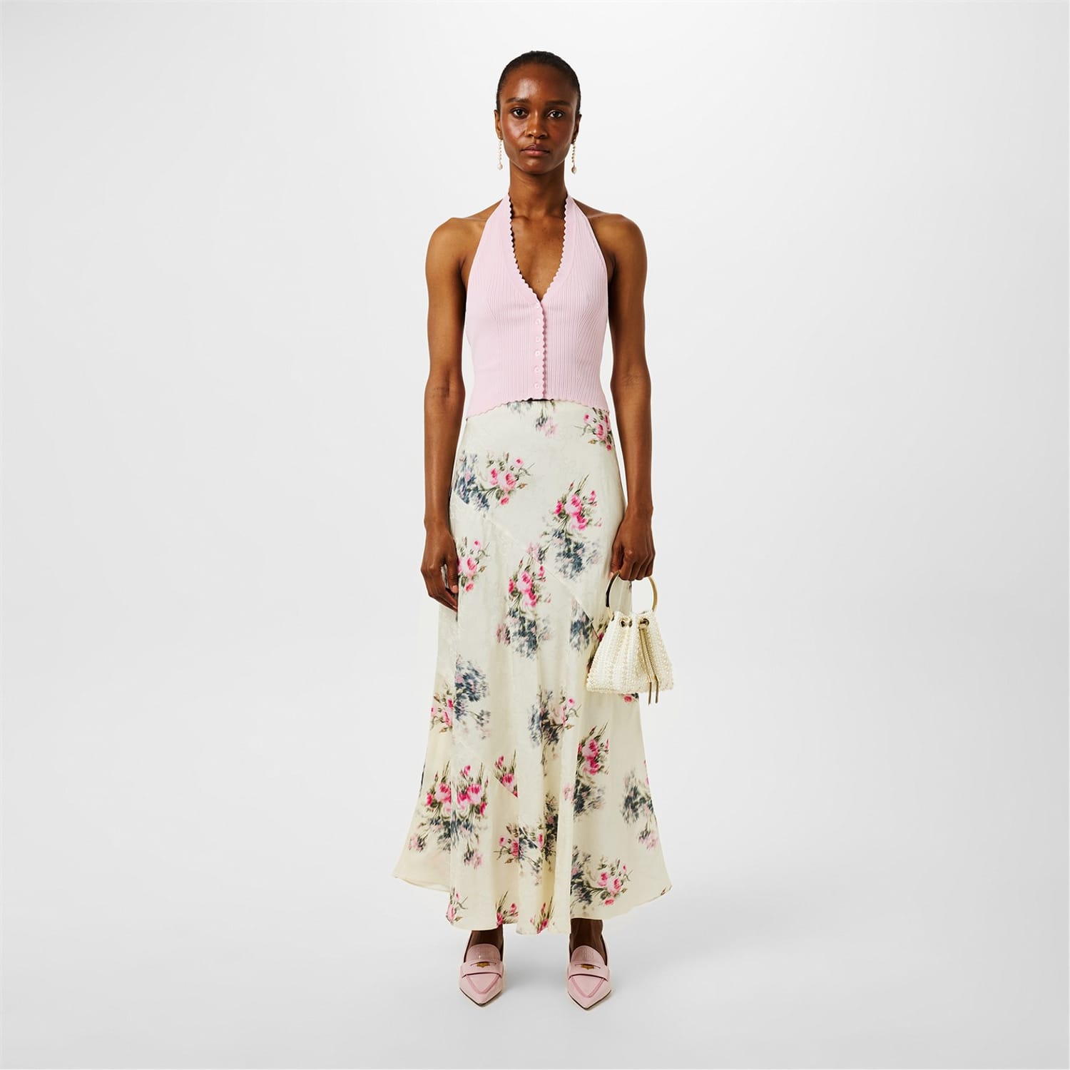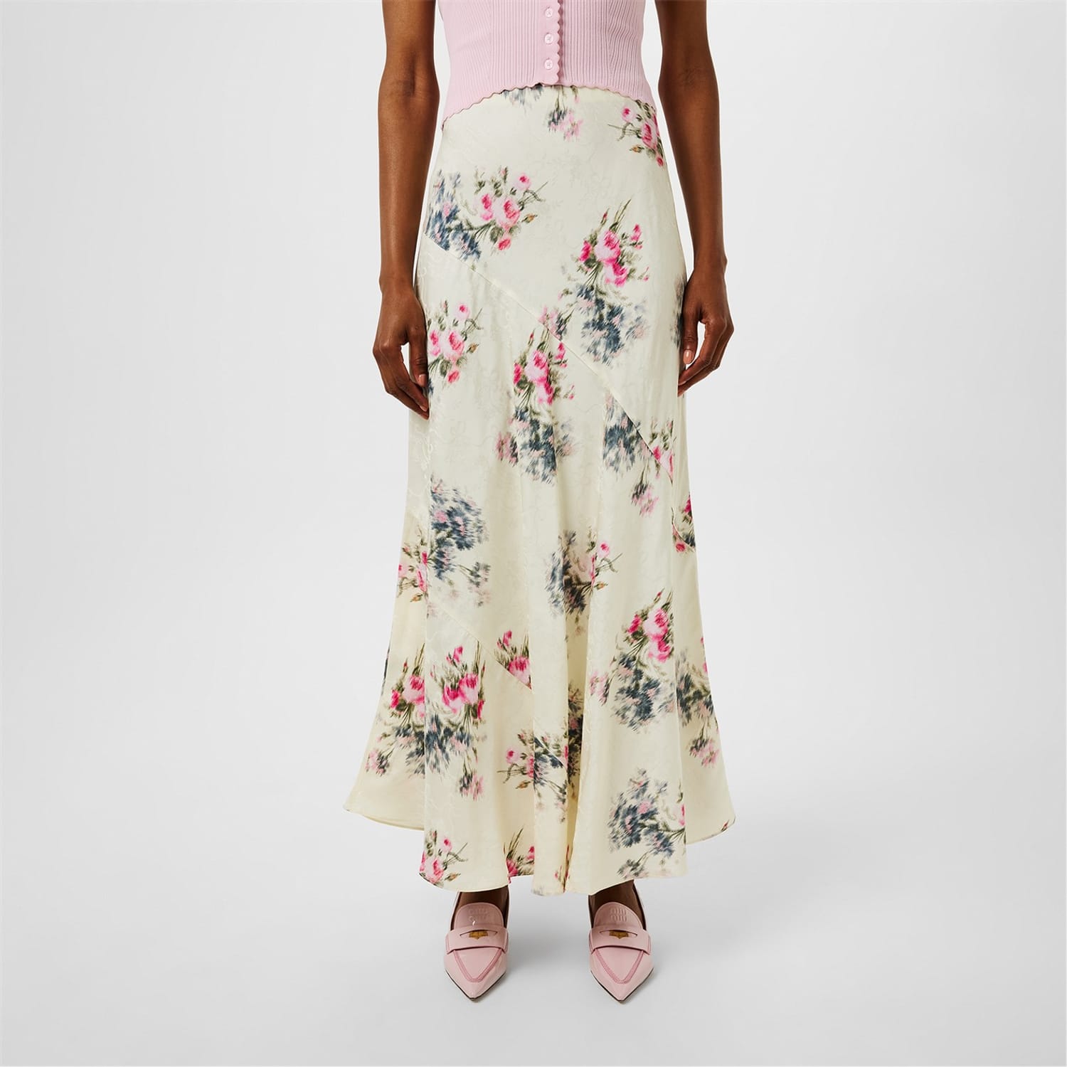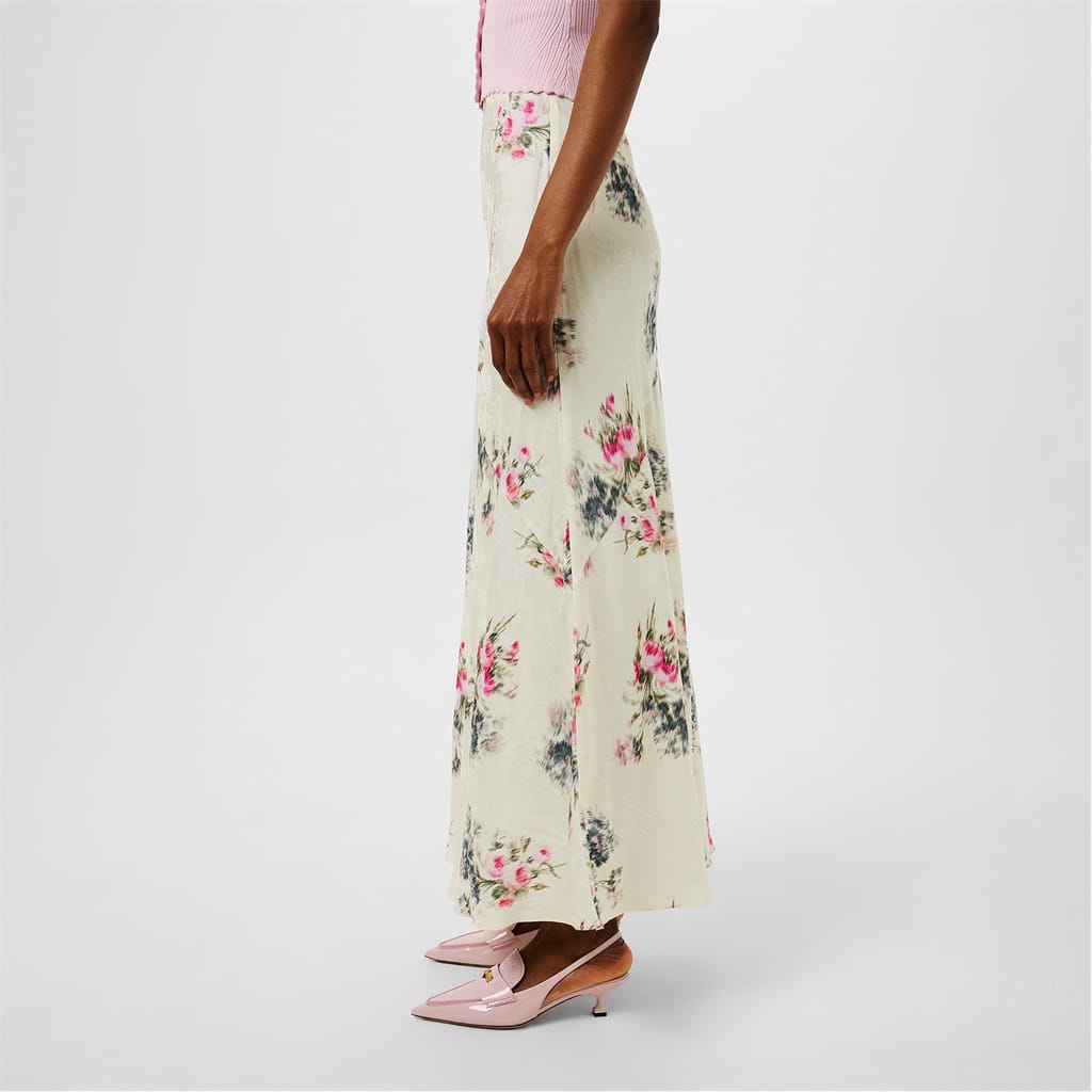 This Love Shack Fancy maxi skirt features a charming floral pattern, perfect for a casual collection. Its elegant design and length make it a versatile addition to any wardrobe. -