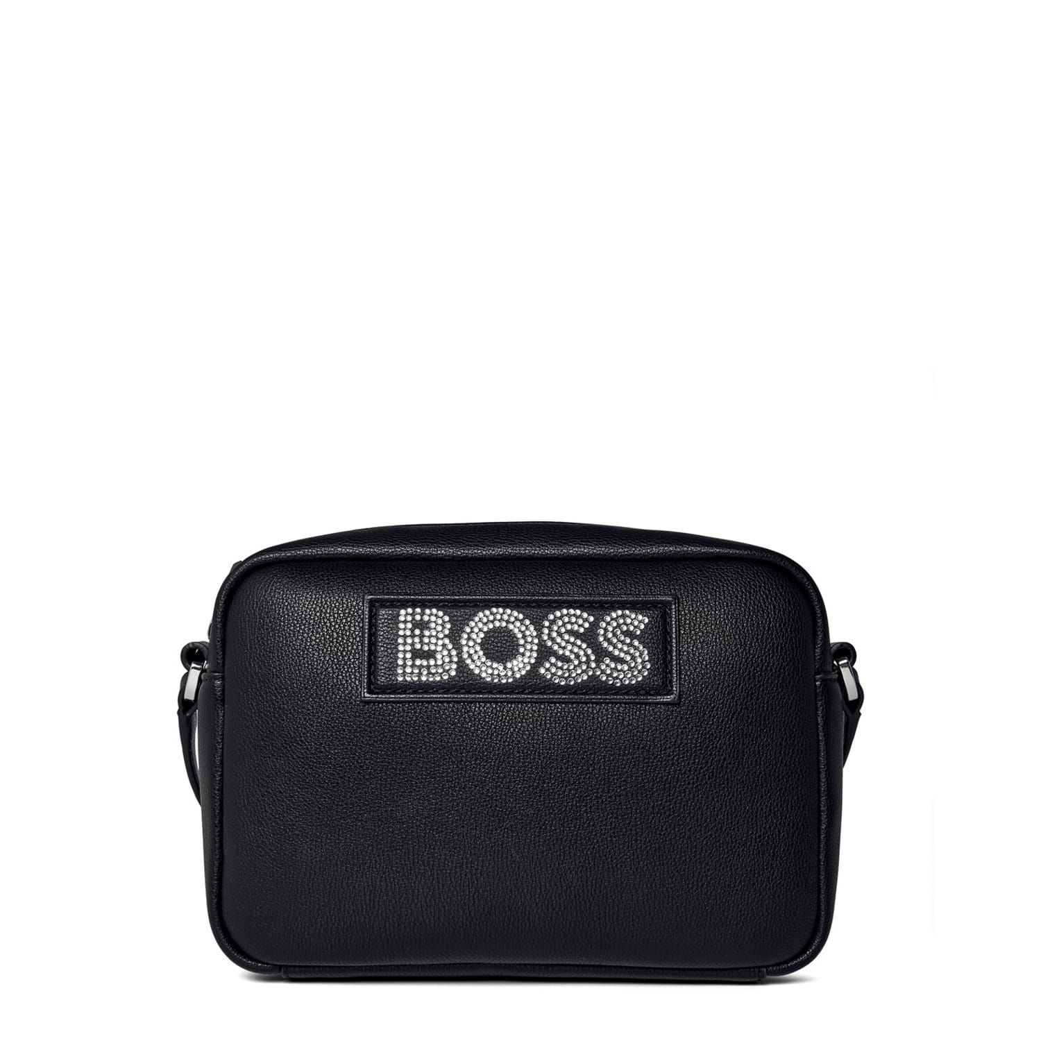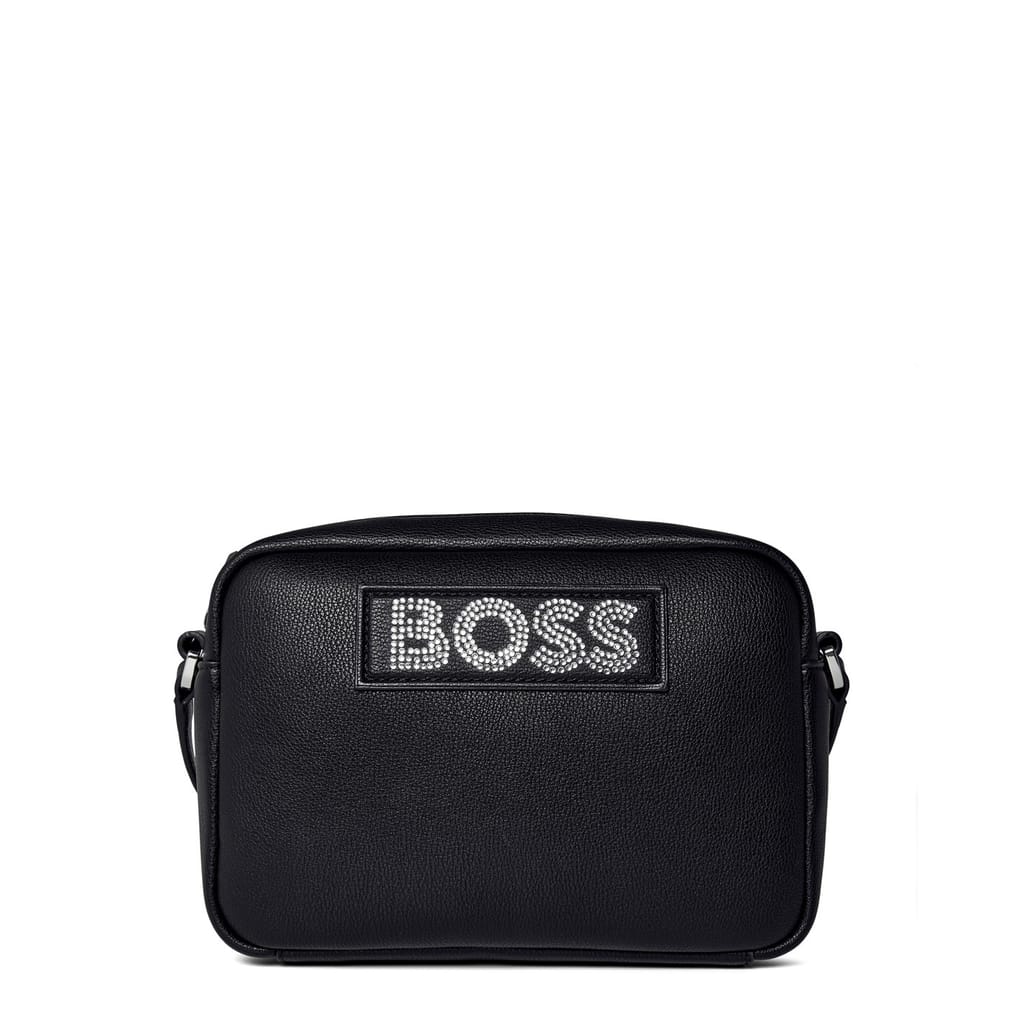 Discover the BOSS cross-body bag, a stylish accessory for any occasion. Featuring a secure zipper closure and a comfortable shoulder handle, this bag is both practical and chic. Adorned with elegant rhinestones and the iconic logo, it adds a touch of sophistication to your ensemble. -