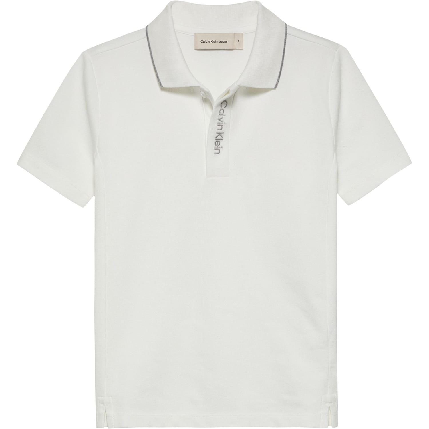 This Calvin Klein Jeans top from the semi-formal collection features a solid pattern and a polo collar. It is designed with short sleeves and a regular fit, offering a classic look. The top is embellished with a logo, adding a touch of brand identity. The button closure ensures a neat finish. -