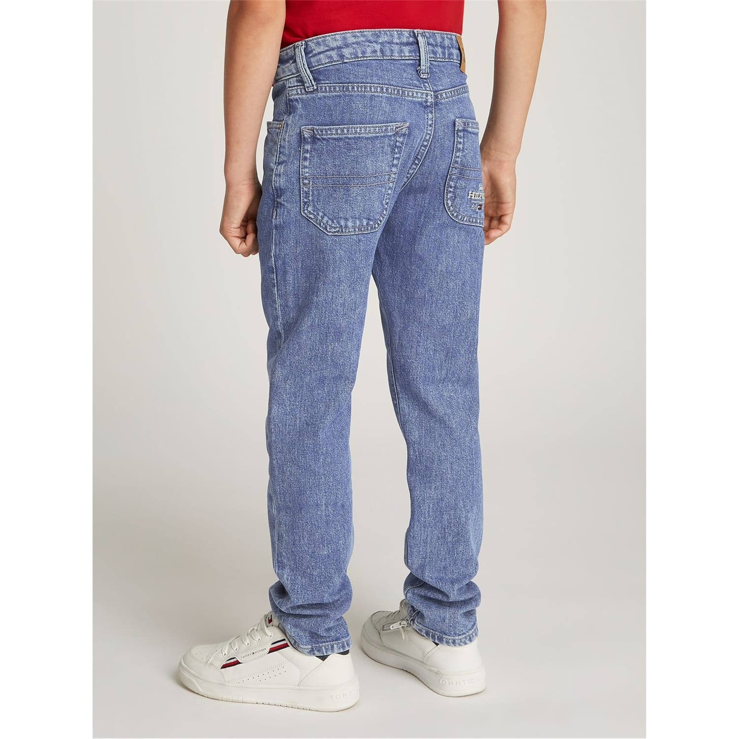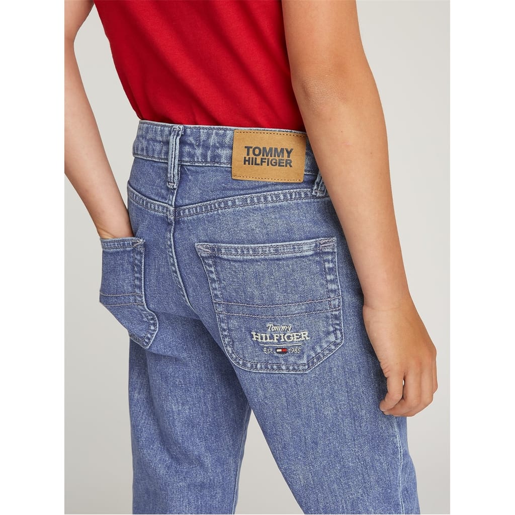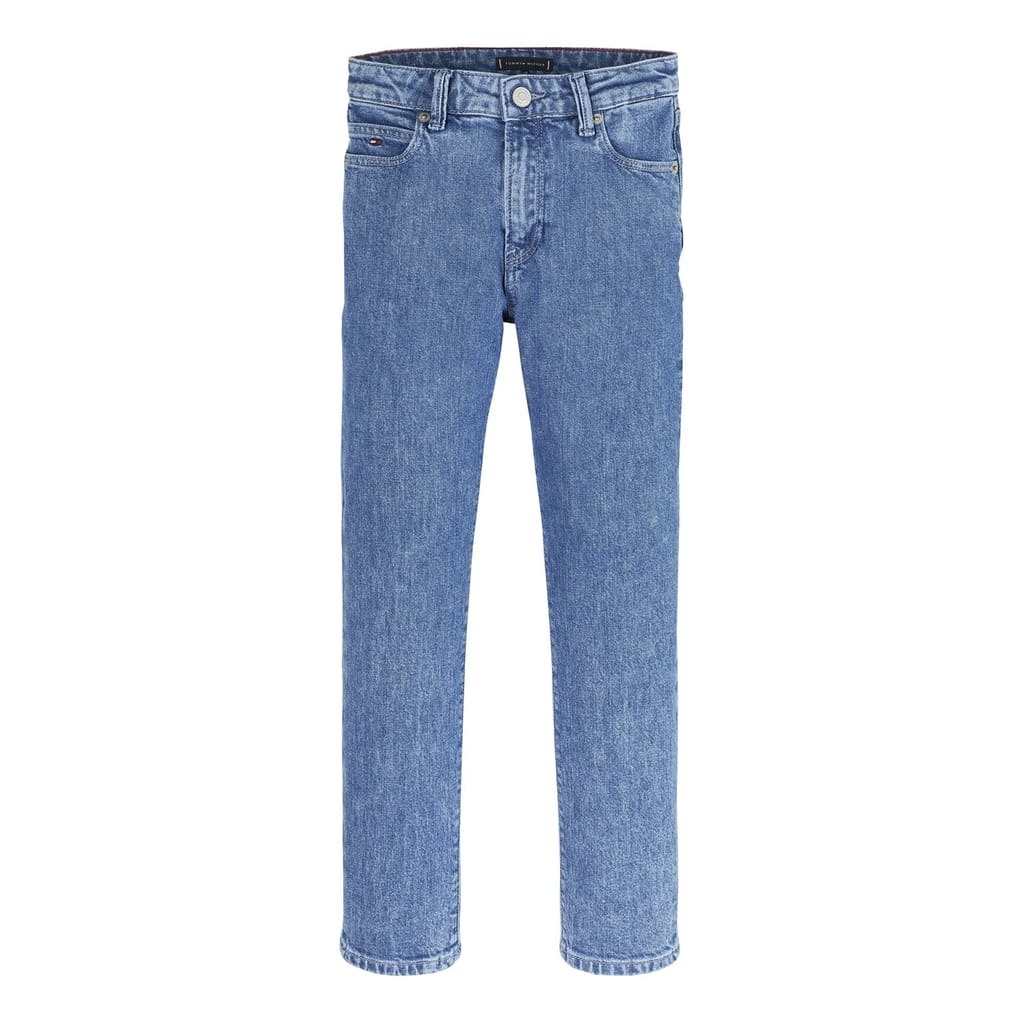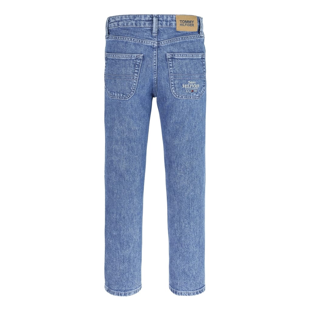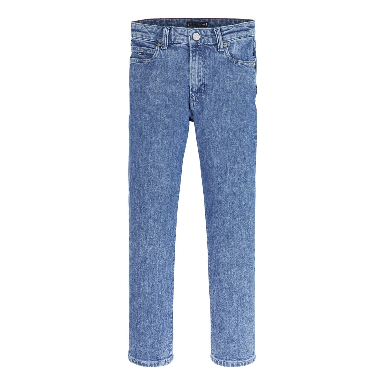 Discover the timeless appeal of Tommy Hilfiger's salt and pepper jeans, featuring a straight fit and a classic five-pocket design. These jeans are equipped with a zip fly and button closure, offering both style and functionality. The subtle logo embellishment adds a touch of brand identity, making them a perfect addition to any casual collection. -
