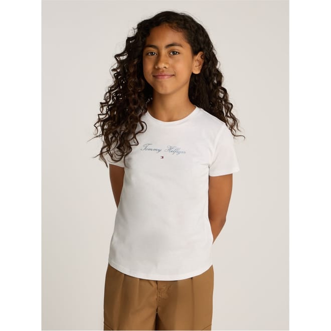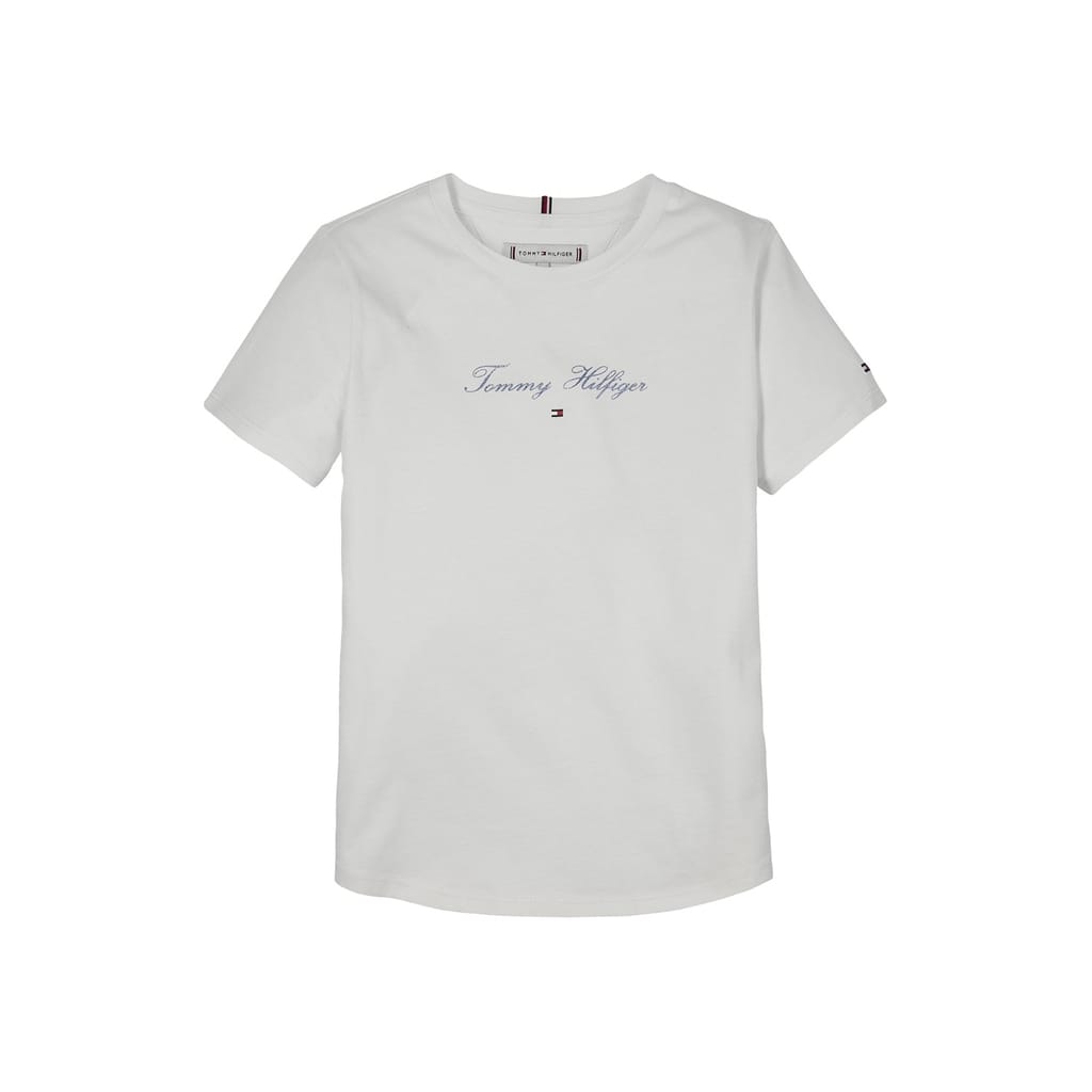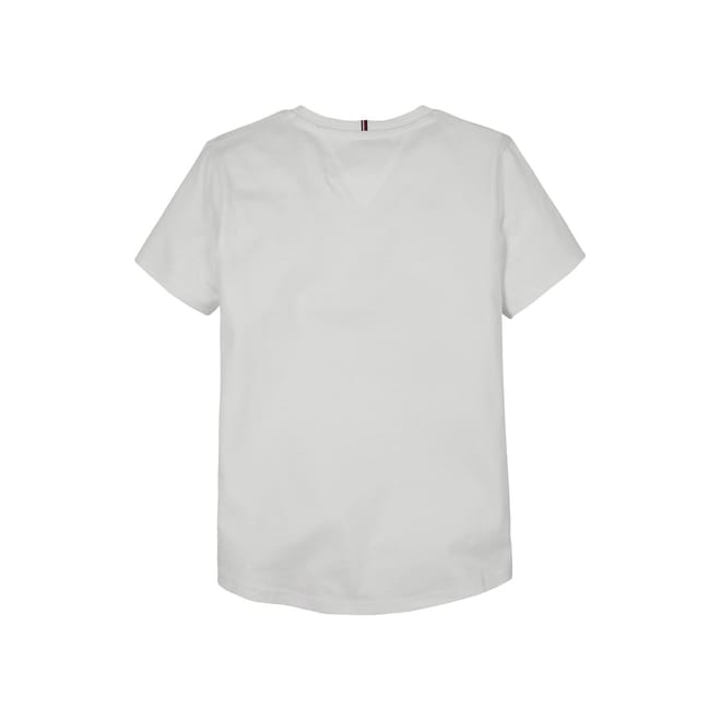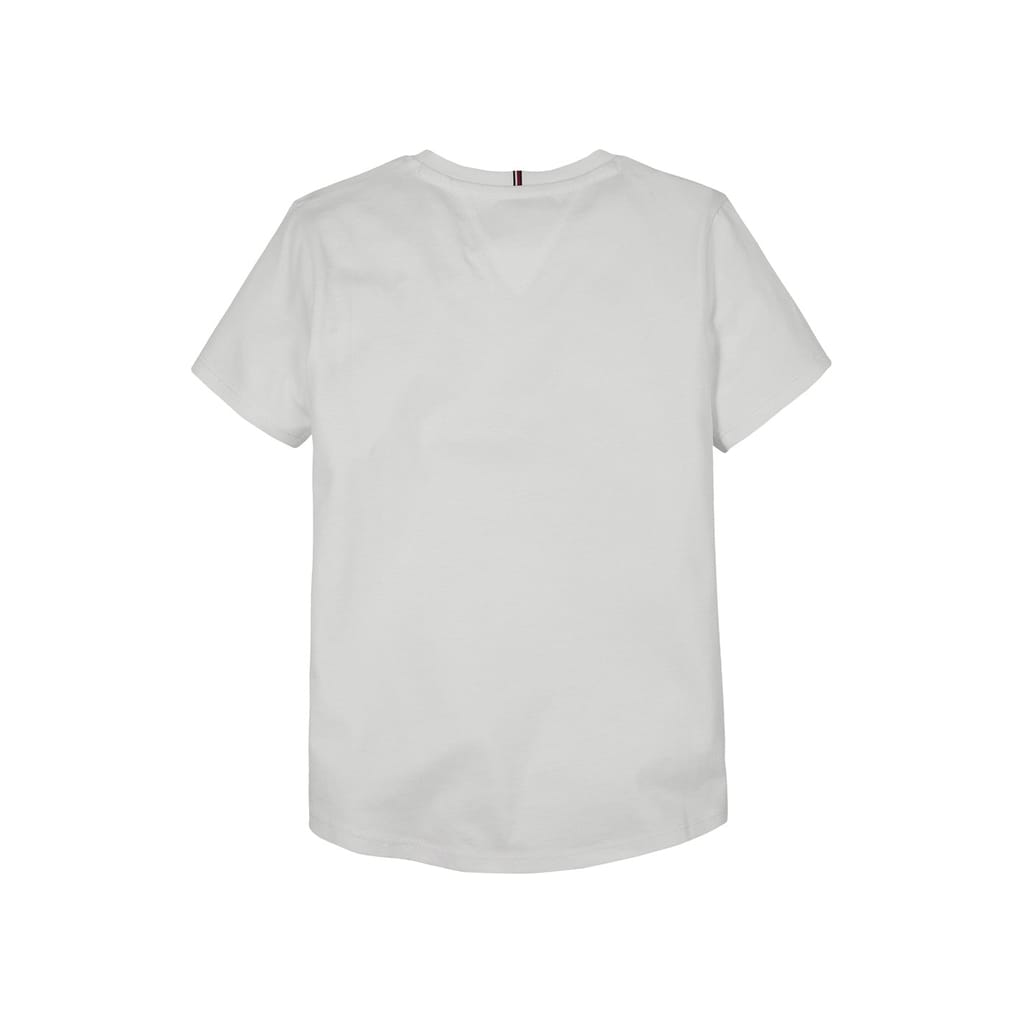 Discover the casual elegance of Tommy Hilfiger's solid top, featuring a crew neck and short sleeves. This slim fit piece is part of the basic collection, showcasing an embroidered logo for a touch of brand identity. -