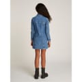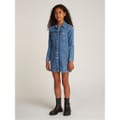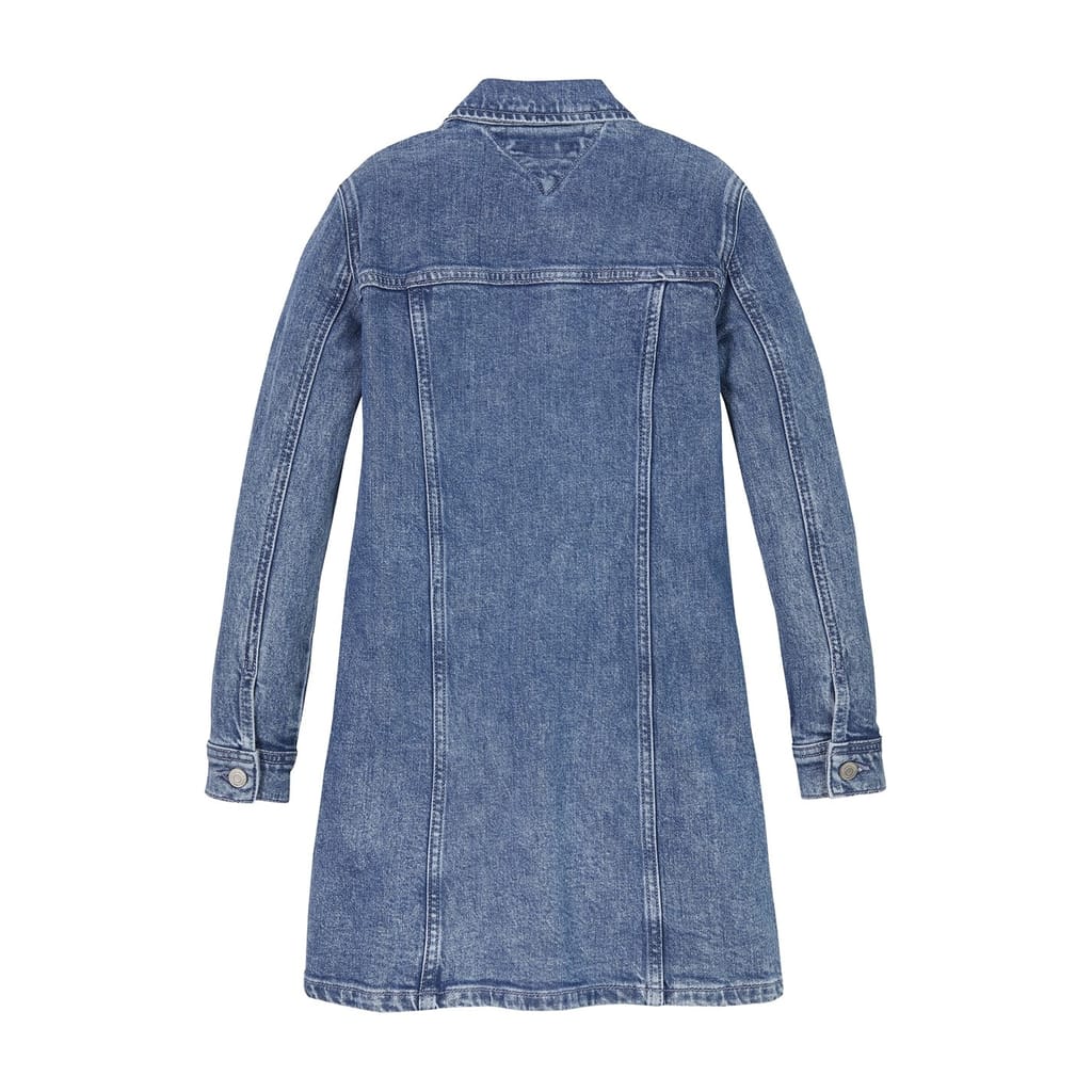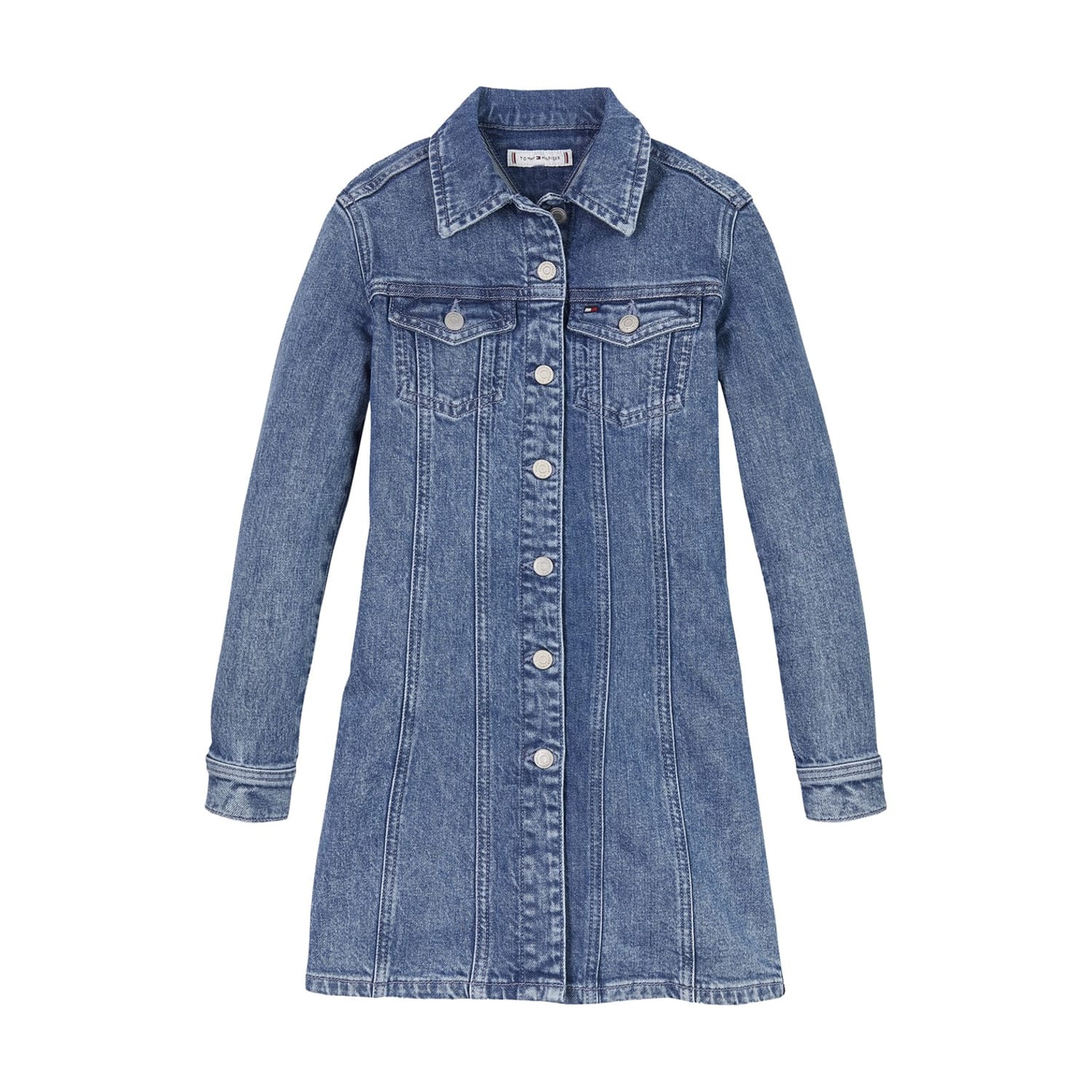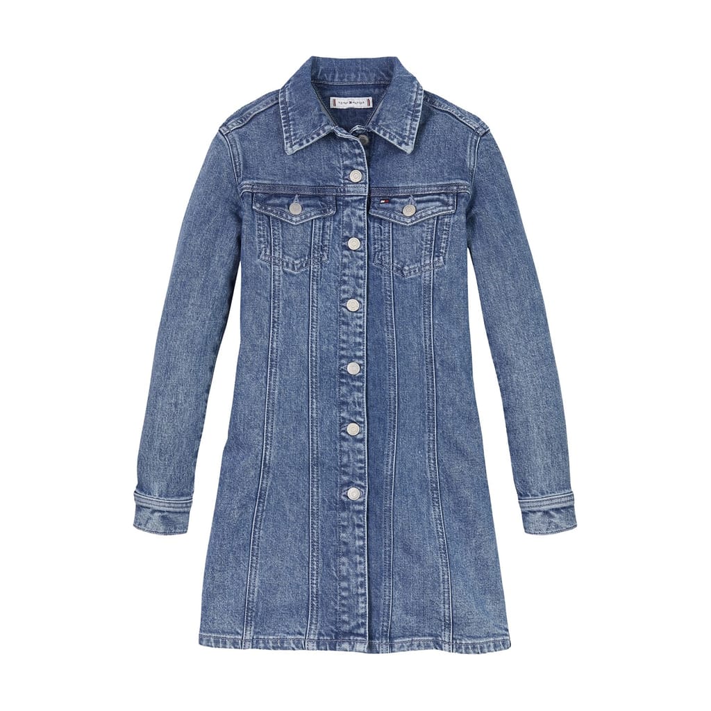 This Tommy Hilfiger mini shirtdress combines classic style with modern elegance. Featuring a collared neck and a point collar, it offers a sophisticated look. The long sleeves and button closure add to its timeless appeal. Crafted in a solid pattern with a straight hem, it includes a chest pocket and logo embellishment, ensuring a regular fit for versatile wear. -