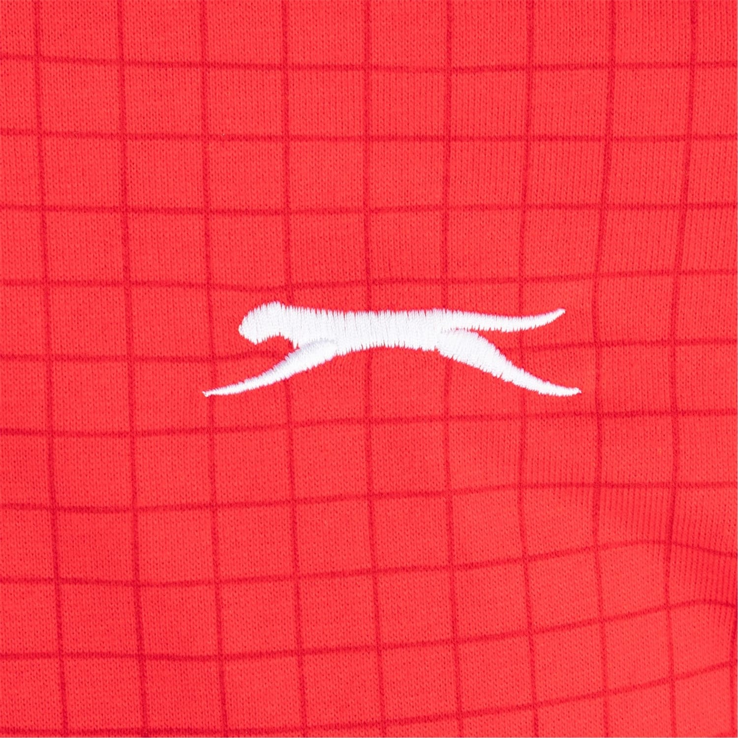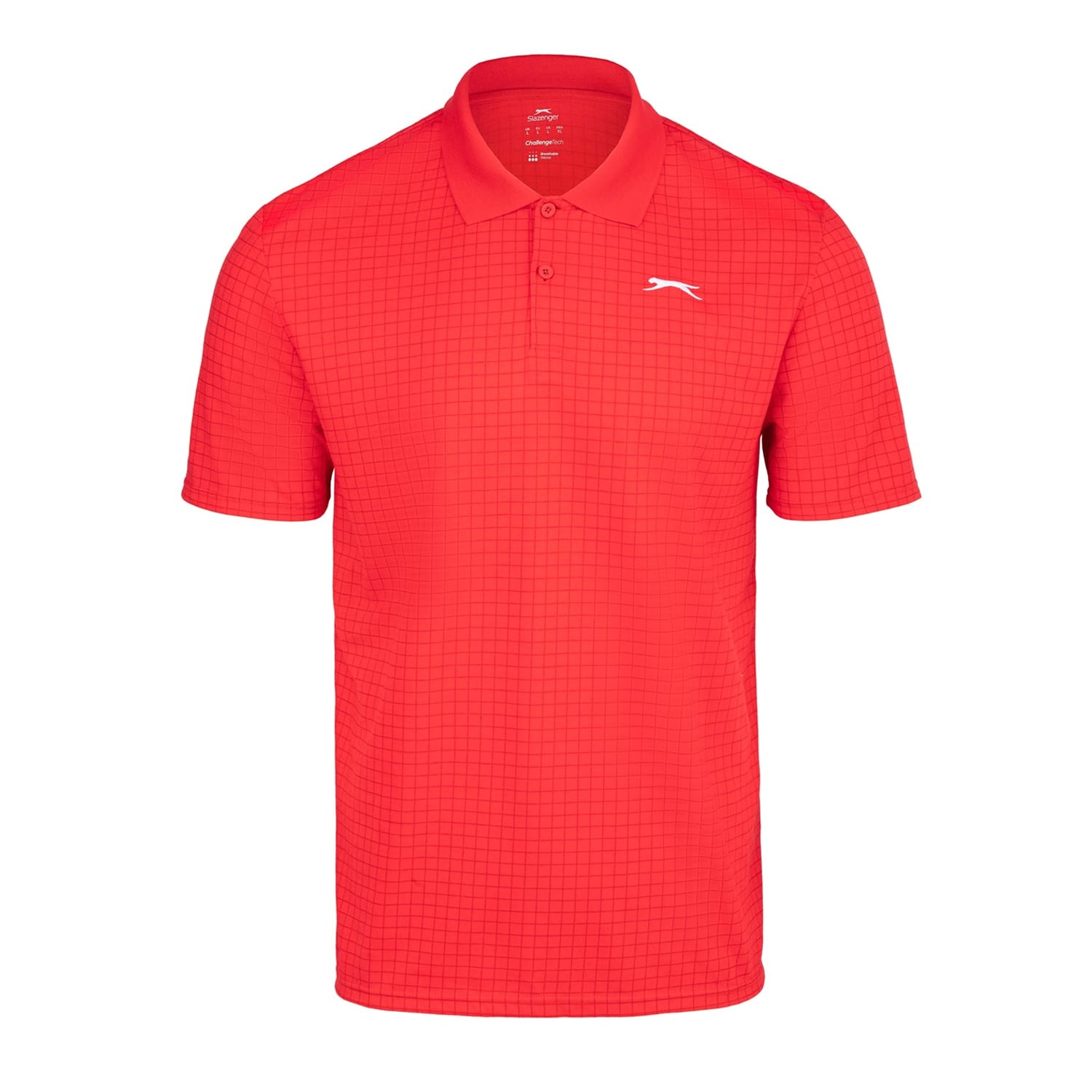 - Conquer your next round of golf with the Slazenger Check Polo Shirt. Crafted with a regular fold over collar and 3 button placket, this piece features short sleeves and is a lightweight construction. Design with a chequered print and the Slazenger logo embroidered to the chest for a sporty look.