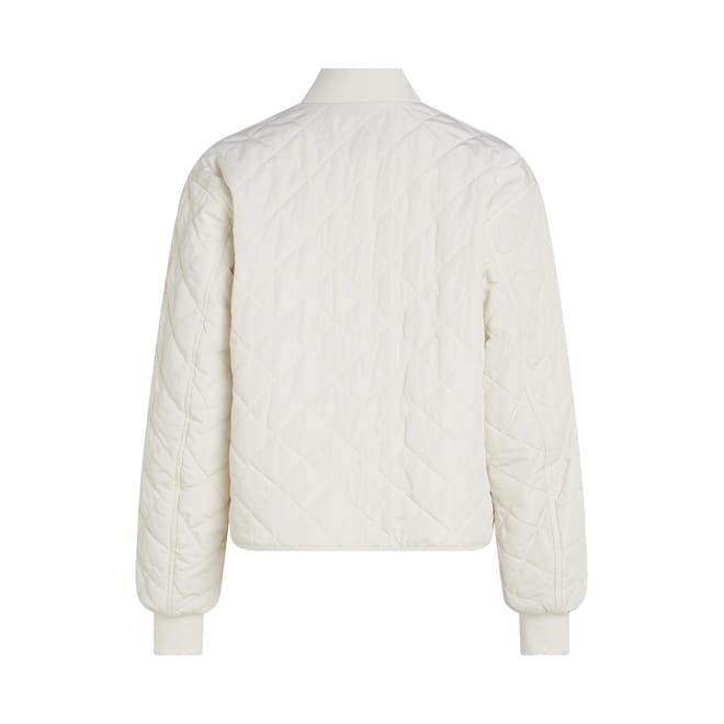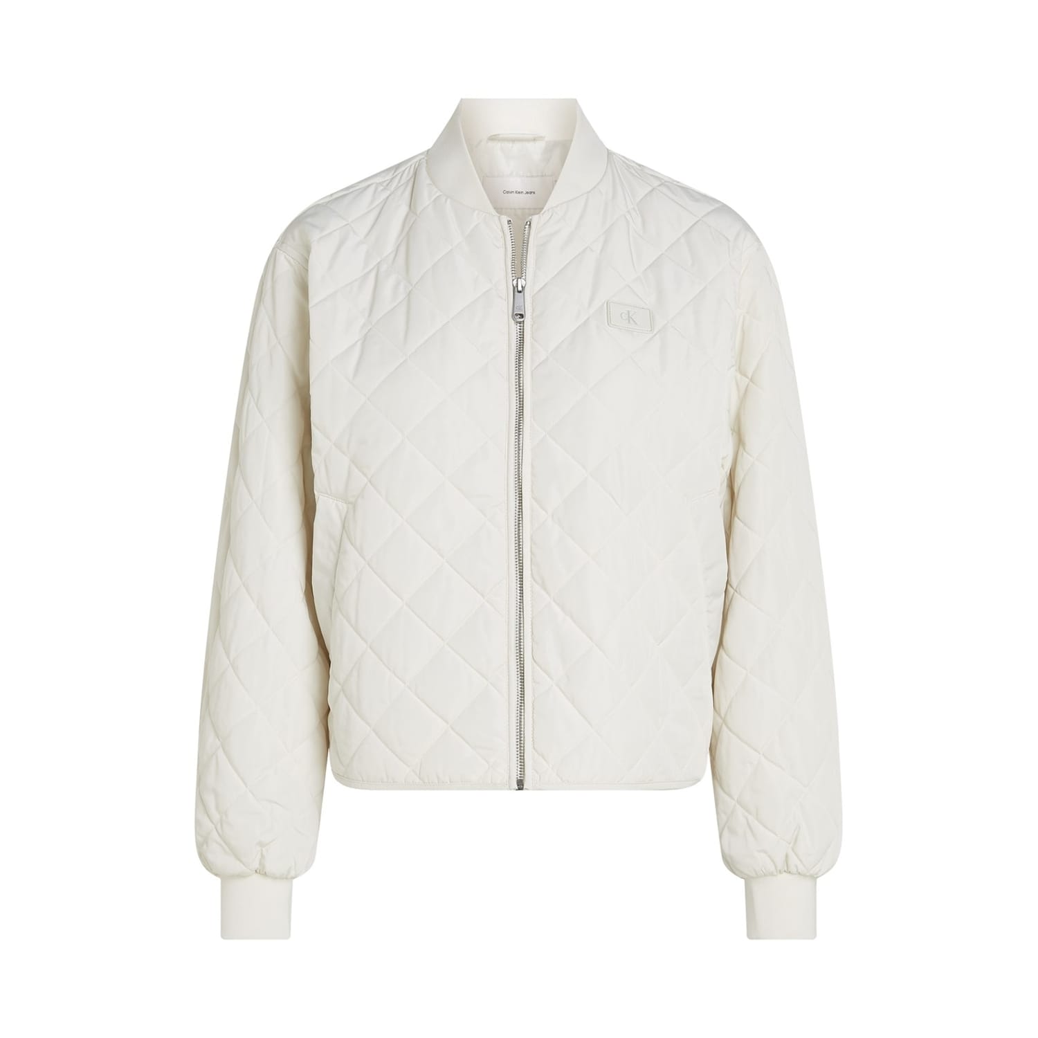 Discover the Calvin Klein Jeans bomber jacket, a classic addition to your wardrobe. This quilted design features a bomber collar and a convenient zipper. The short length and regular fit ensure a comfortable wear, while the ribbed top cuff adds a touch of style. Complete with a logo embellishment, this jacket embodies timeless fashion. -