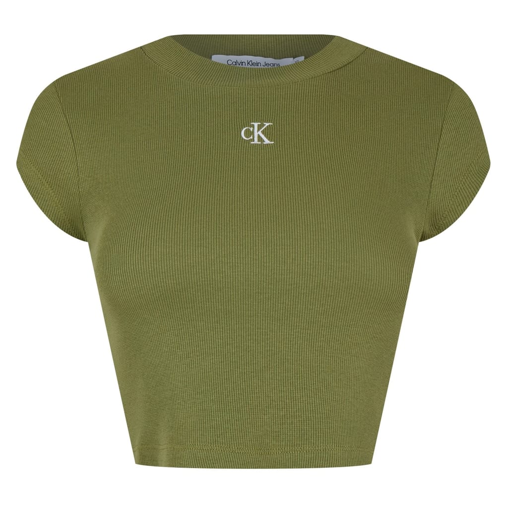 - Completing the look, the signature brand logo is elegantly embroidered on the chest, a mark of sophistication and quality. Ideal for casual outings or stylish gatherings, this Mono Rib Cropped T-Shirt from Calvin Klein Jeans is a versatile piece that transitions seamlessly from day to night.