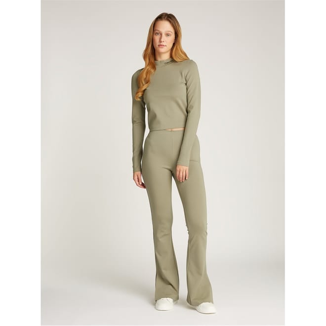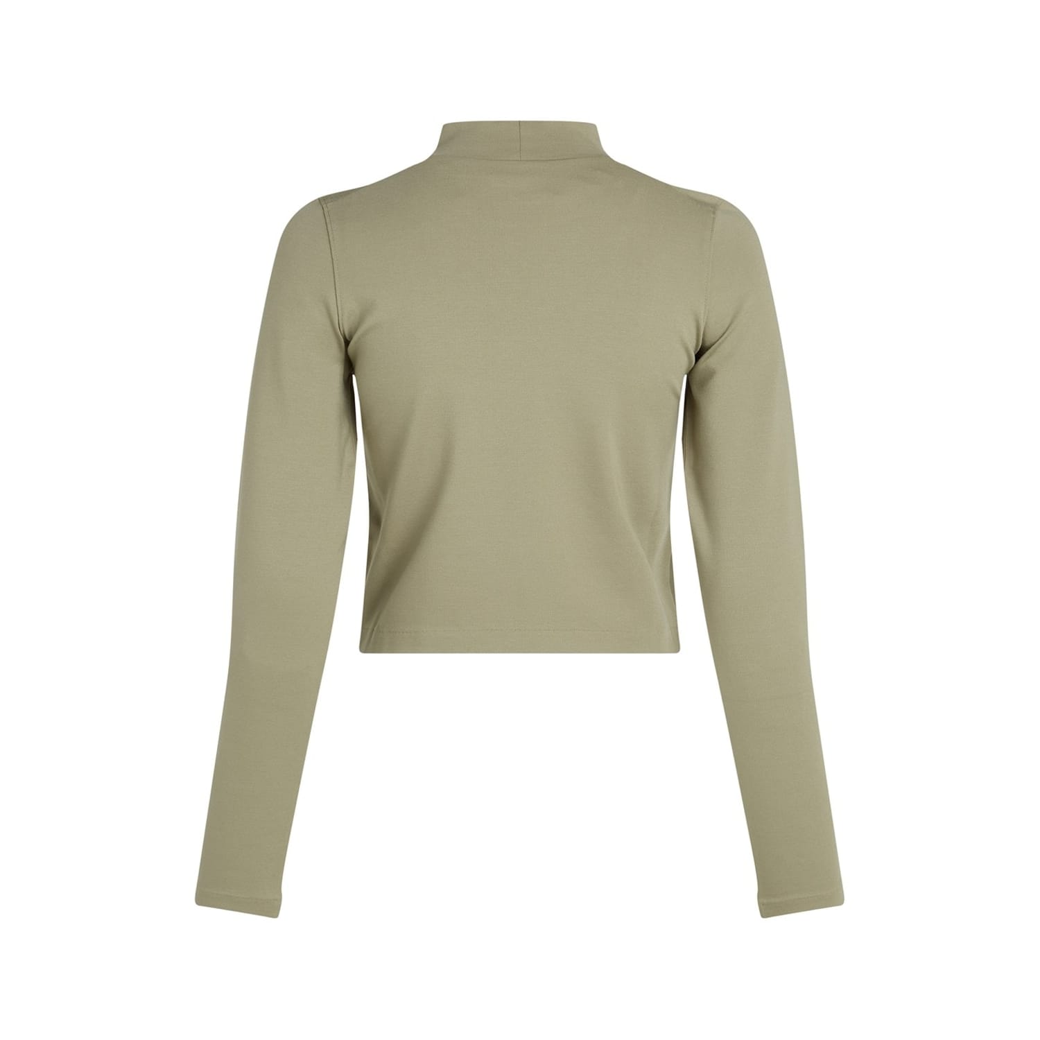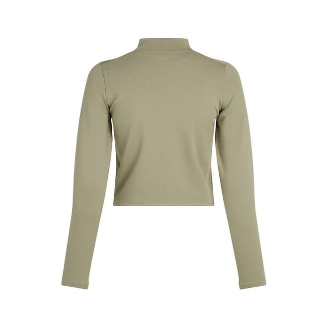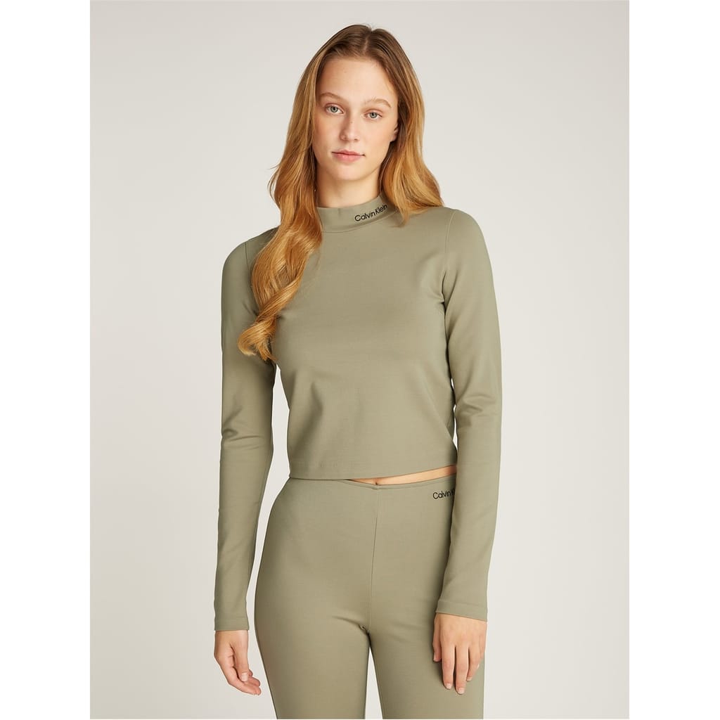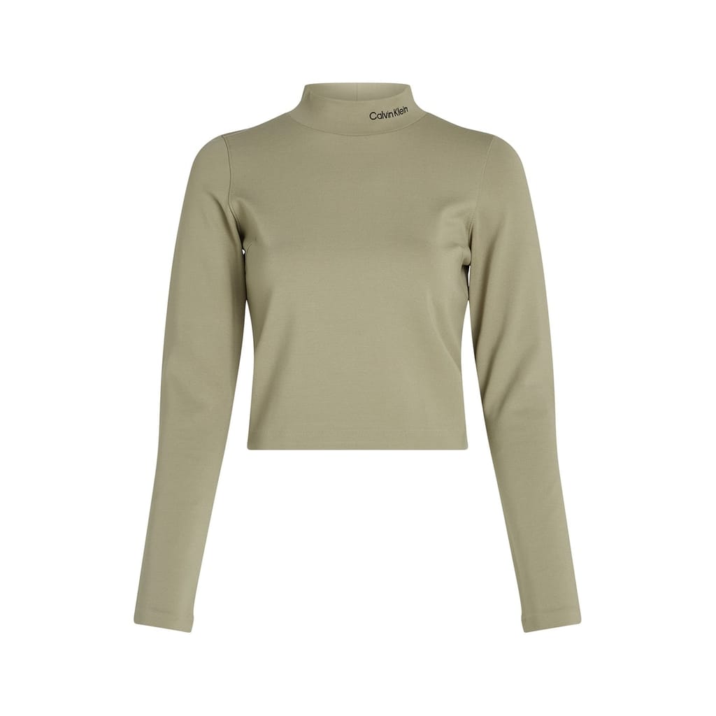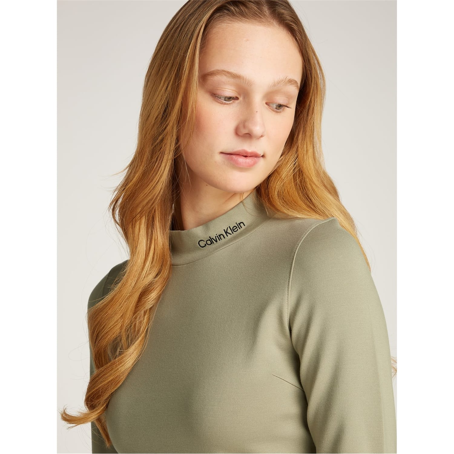 This Calvin Klein Jeans cropped sweater offers a modern twist with its mock neck and long sleeves. Crafted for regular fit, it features an elastic finish for added comfort. The standout logo embellishment adds a stylish touch, making it a distinctive addition to any wardrobe. -