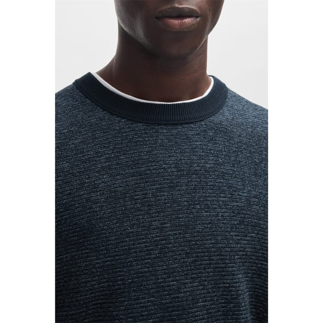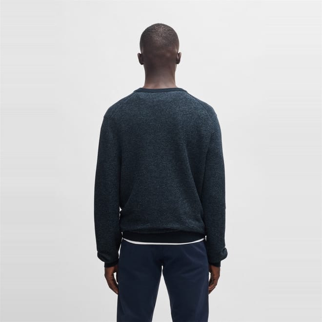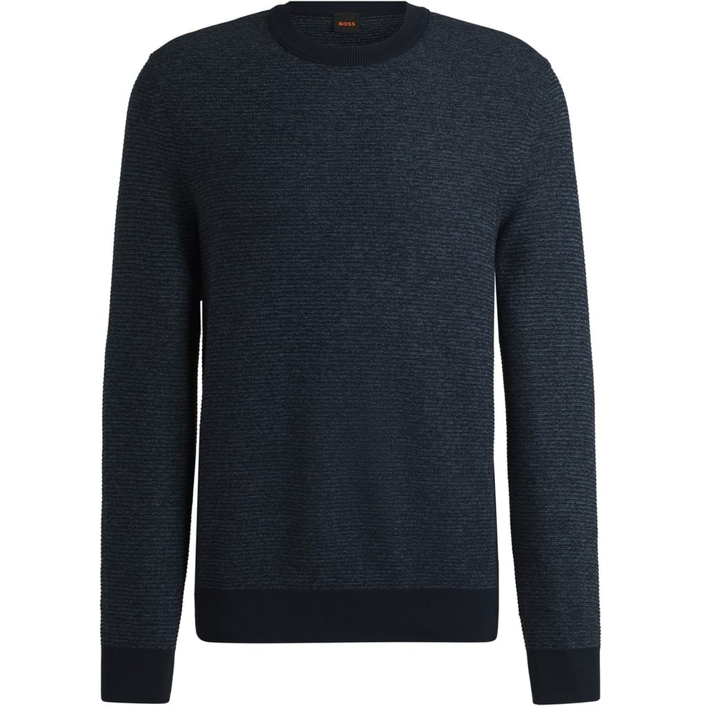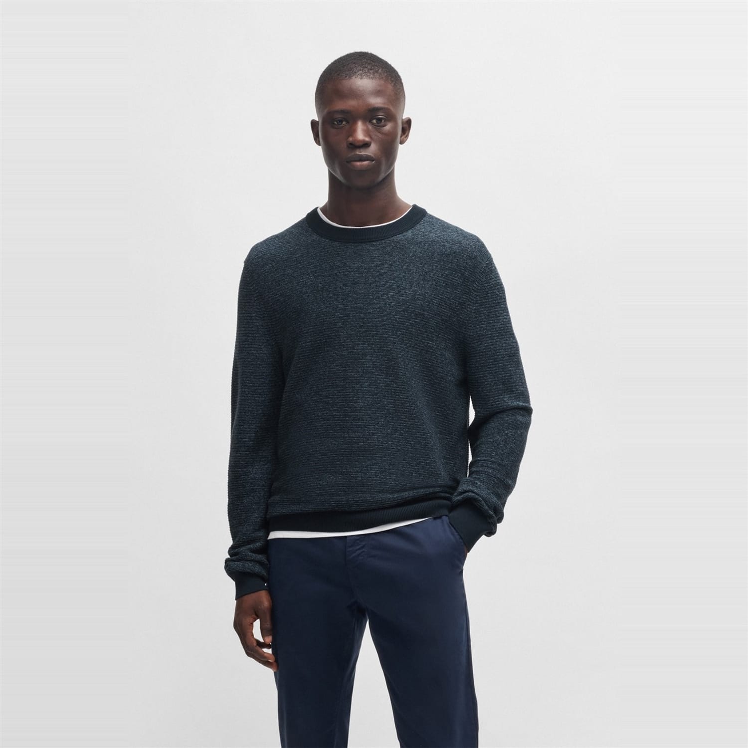 This Boss sweater is a stylish addition to your wardrobe. Featuring a heathered pattern, it comes with long sleeves and a crew neck for a classic look. The regular fit ensures comfort, while ribbed cuffs and a ribbed collar add a touch of detail. Perfect for a sophisticated yet casual appearance. -