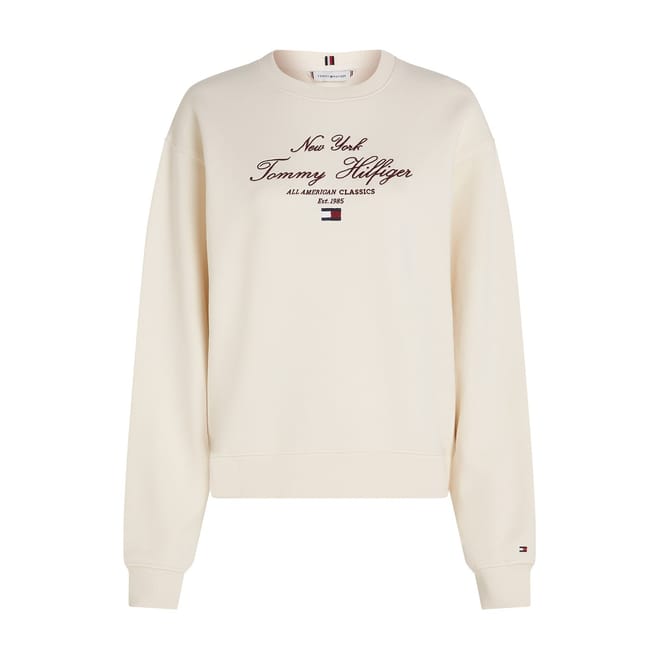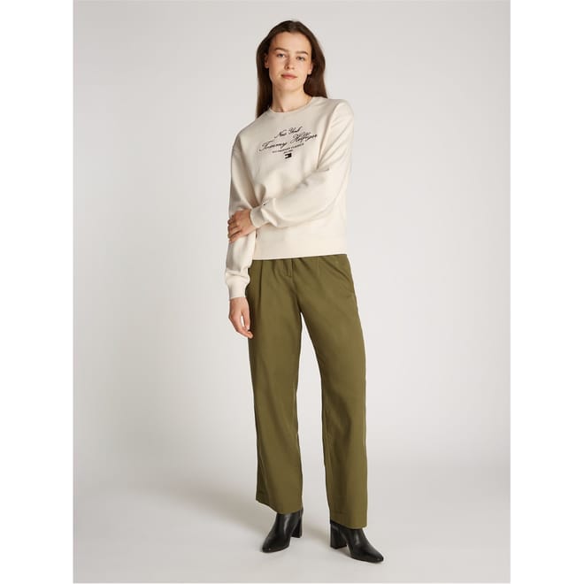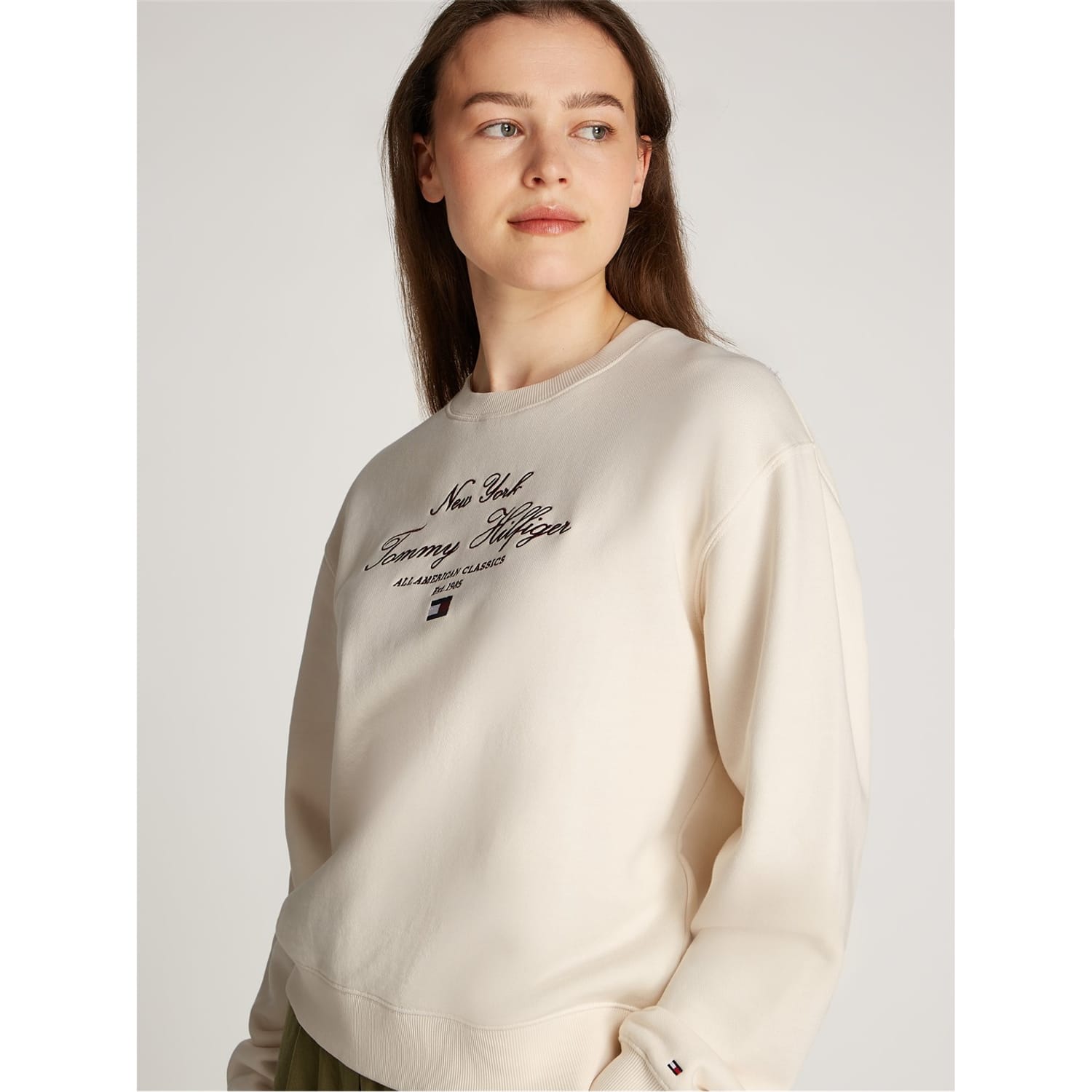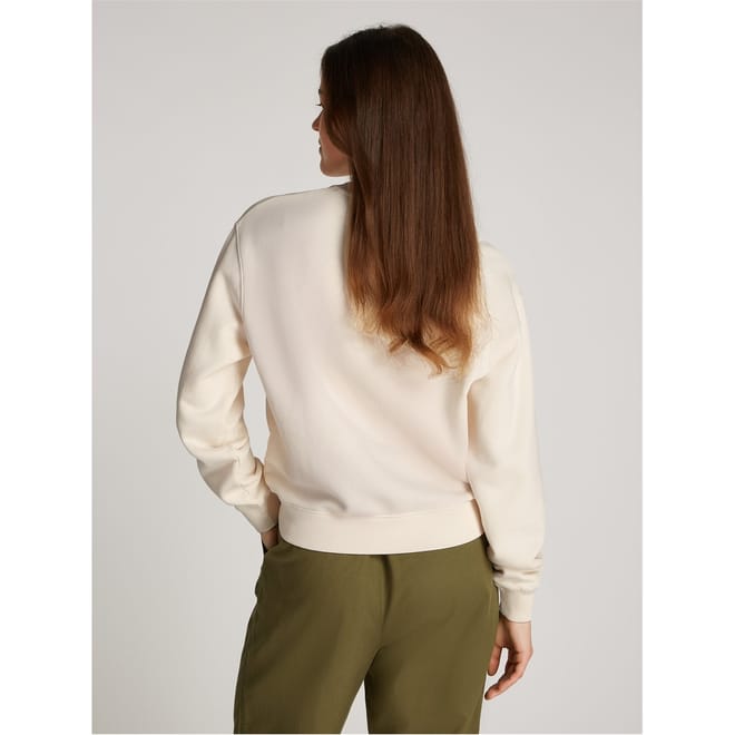 Discover the Tommy Hilfiger top, featuring a solid pattern and a crew neck. This long sleeve design offers a regular fit, complemented by ribbed cuffs and collar. The embroidered logo adds a touch of distinction, making it a versatile addition to your wardrobe. -