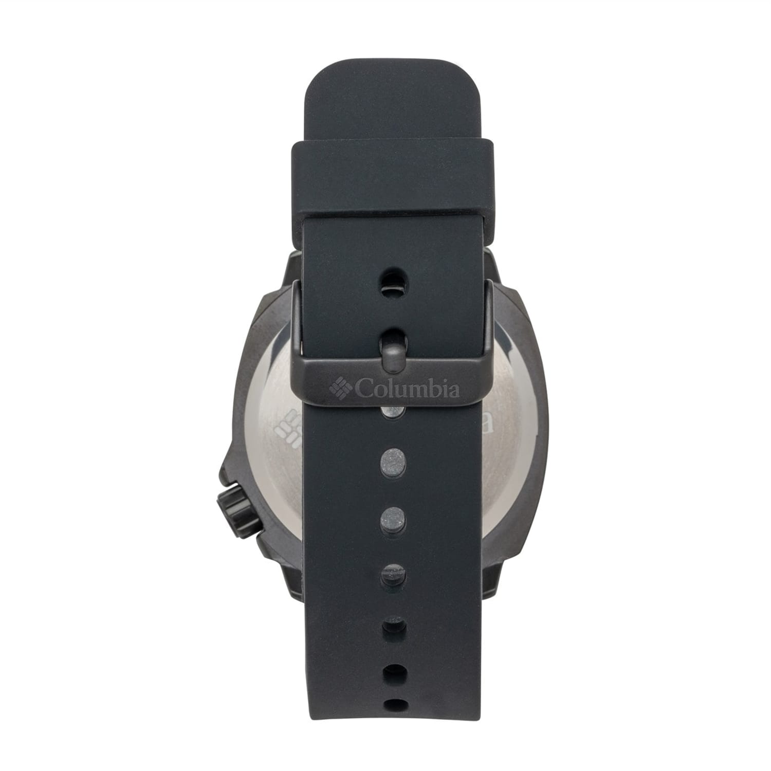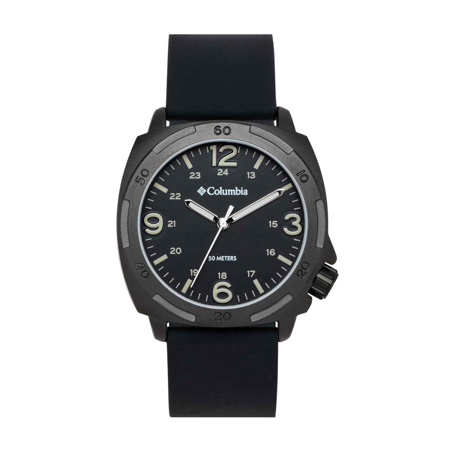 This silicone strap wristwatch collection belongs to the Delta Ridge collection. It has a tonneau shaped case housing a circular dial with Arabic and baton indices. The luminous silver-tone hour and minute hands are accompanied by a white second hand. For accurate time reading, the dial includes minute and 24-hour markers. The watch is secured to the wrist with a soft silicone strap and a pin buckle. -