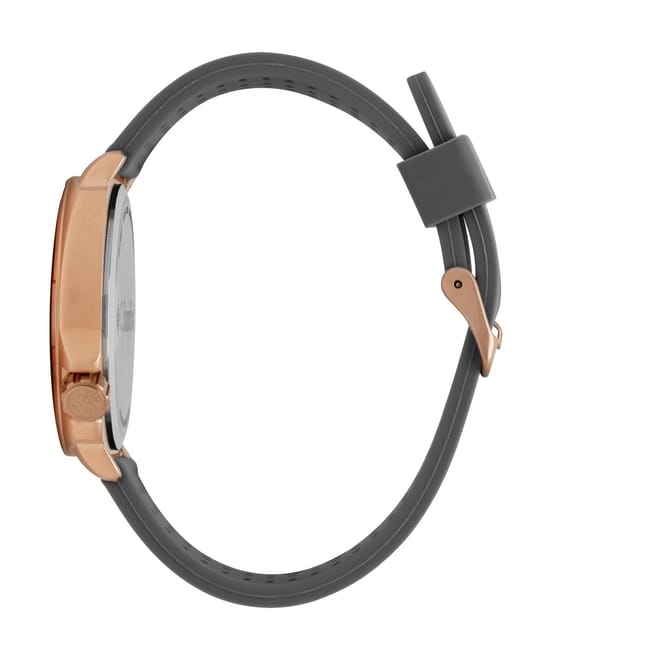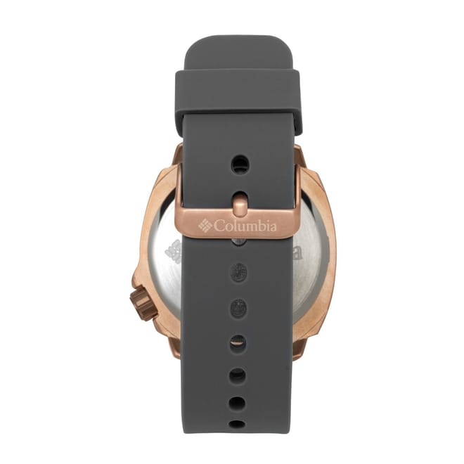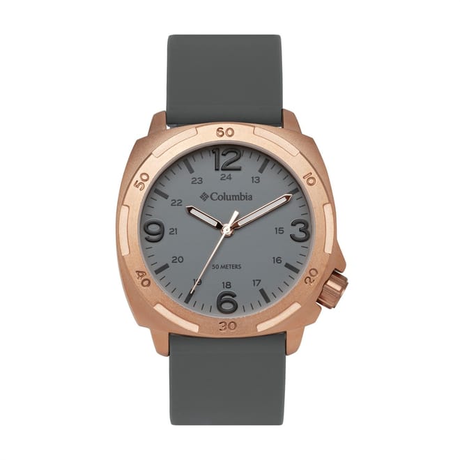 This silicone strap wristwatch collection belongs to the Delta Ridge collection. It has a tonneau shaped case housing a circular dial with Arabic and baton indices. The luminous silver-tone hour and minute hands are accompanied by a white second hand. For accurate time reading, the dial includes minute and 24-hour markers. The watch is secured to the wrist with a soft silicone strap and a pin buckle. -