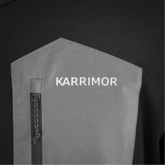 This Karrimor top is designed for casual wear, featuring a funnel neck and long sleeves. It offers a regular fit and a solid pattern, ensuring a versatile addition to your wardrobe. The top includes a front zipper closure and is embellished with a logo and zipped pocket for added functionality. -