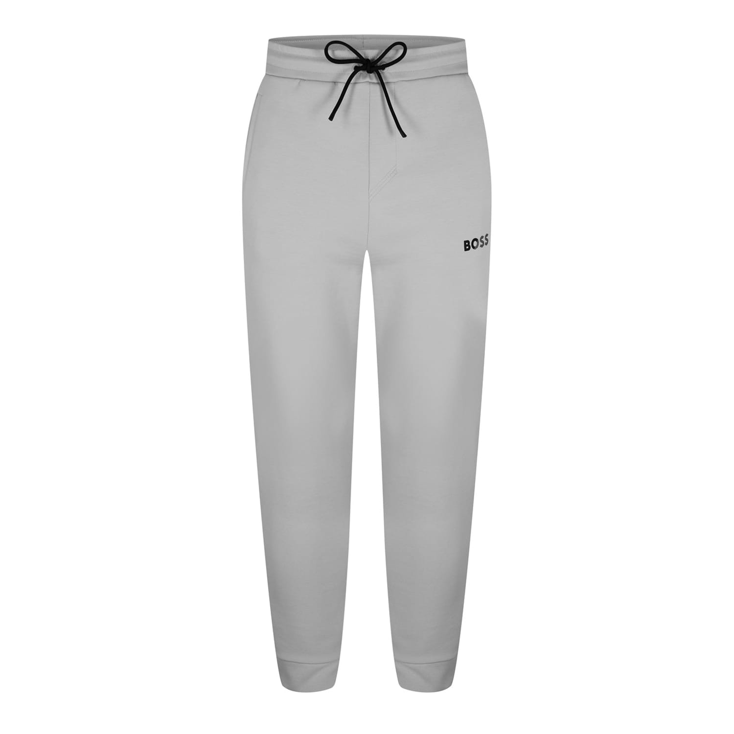 Discover the Boss joggers, featuring a drawstring closure for a comfortable fit. These joggers are adorned with a subtle logo embellishment, adding a touch of brand identity. Perfect for those seeking a blend of style and comfort in their casual wardrobe. -