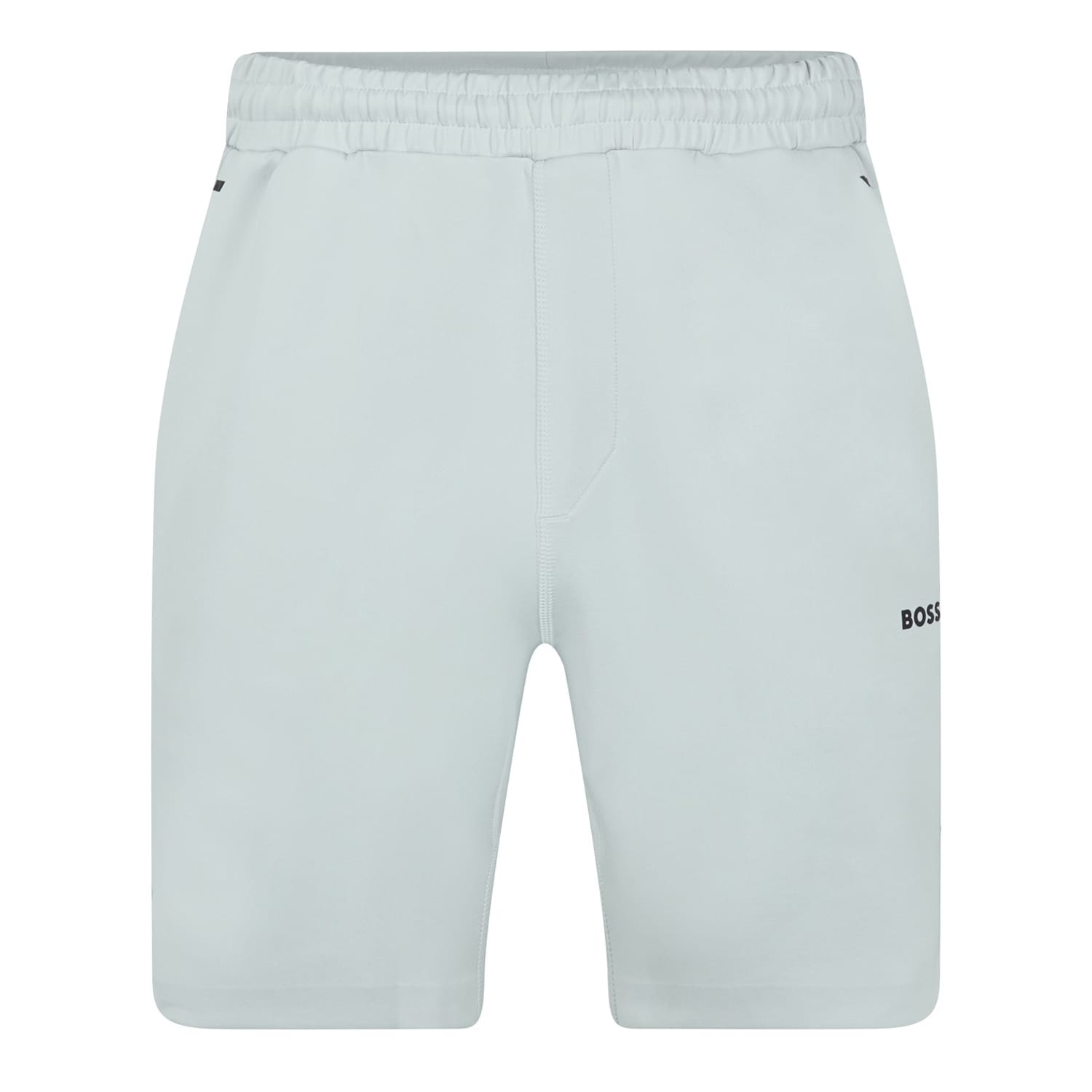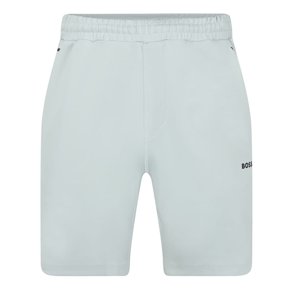 Elevate your activewear collection with Boss athletic shorts. Crafted from woven fabric, these solid shorts feature a drawstring closure for a secure fit. The design is enhanced with a logo and practical pockets, making them a versatile addition to your wardrobe. -