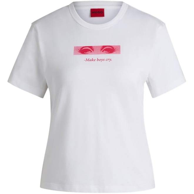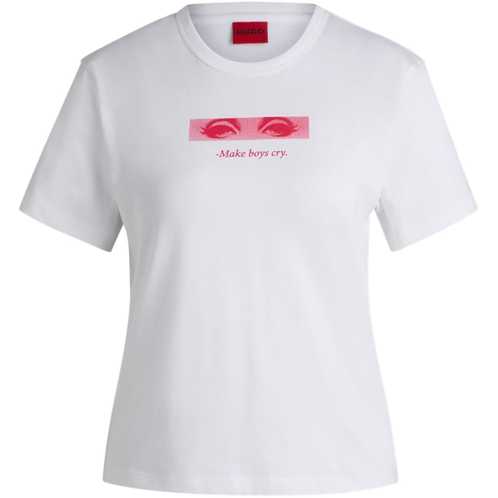 This Hugo top is a perfect addition to your casual collection. Featuring a regular fit and a crew neck, it offers comfort and style. The graphic print with lettering adds a modern touch, while the logo embellishment subtly showcases the brand. Ideal for those who appreciate a blend of simplicity and contemporary design. -