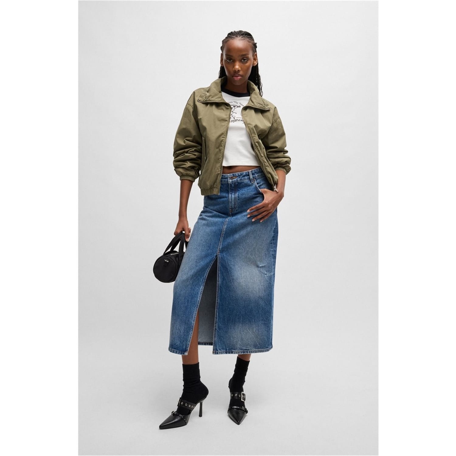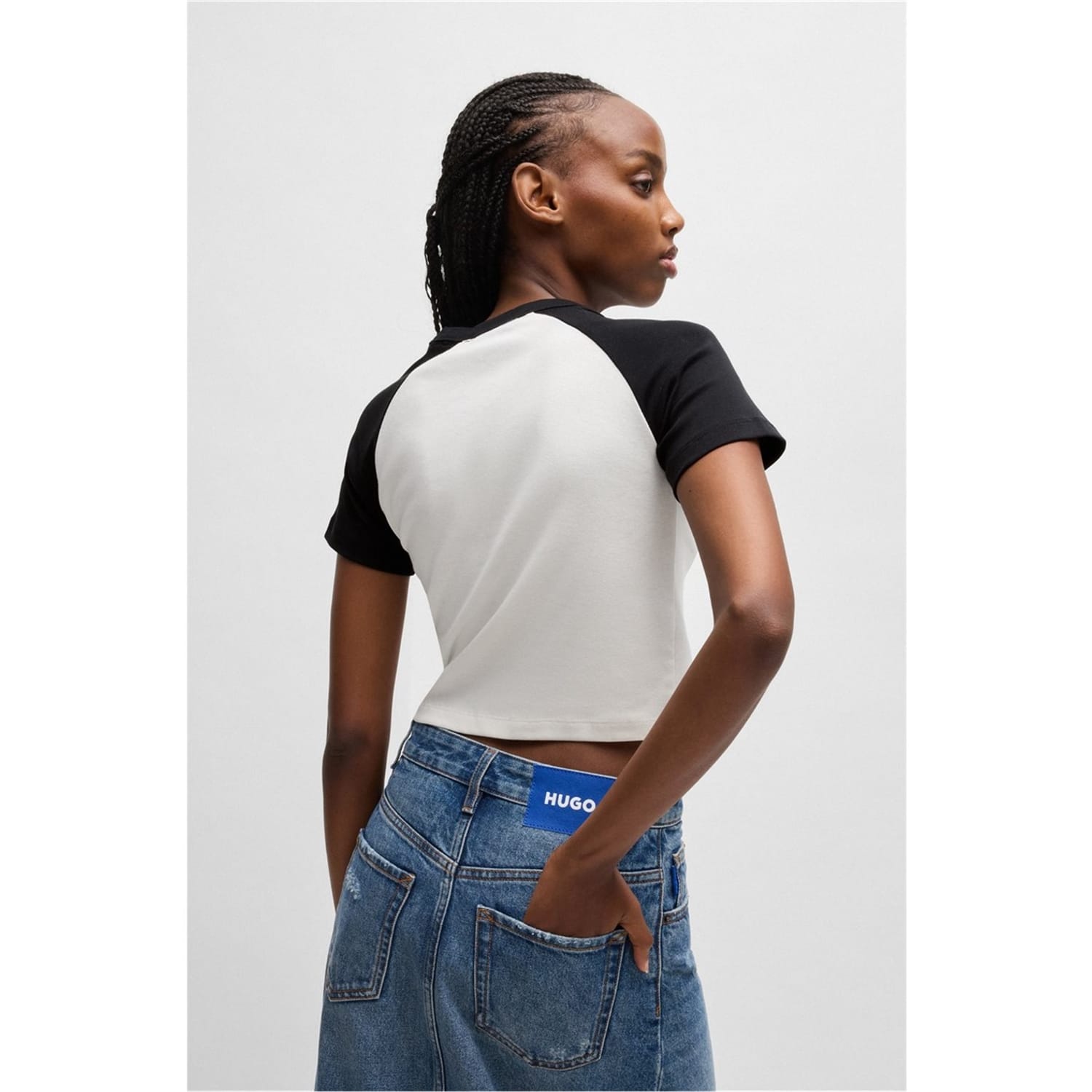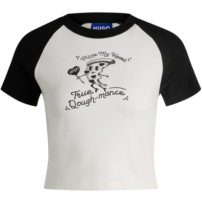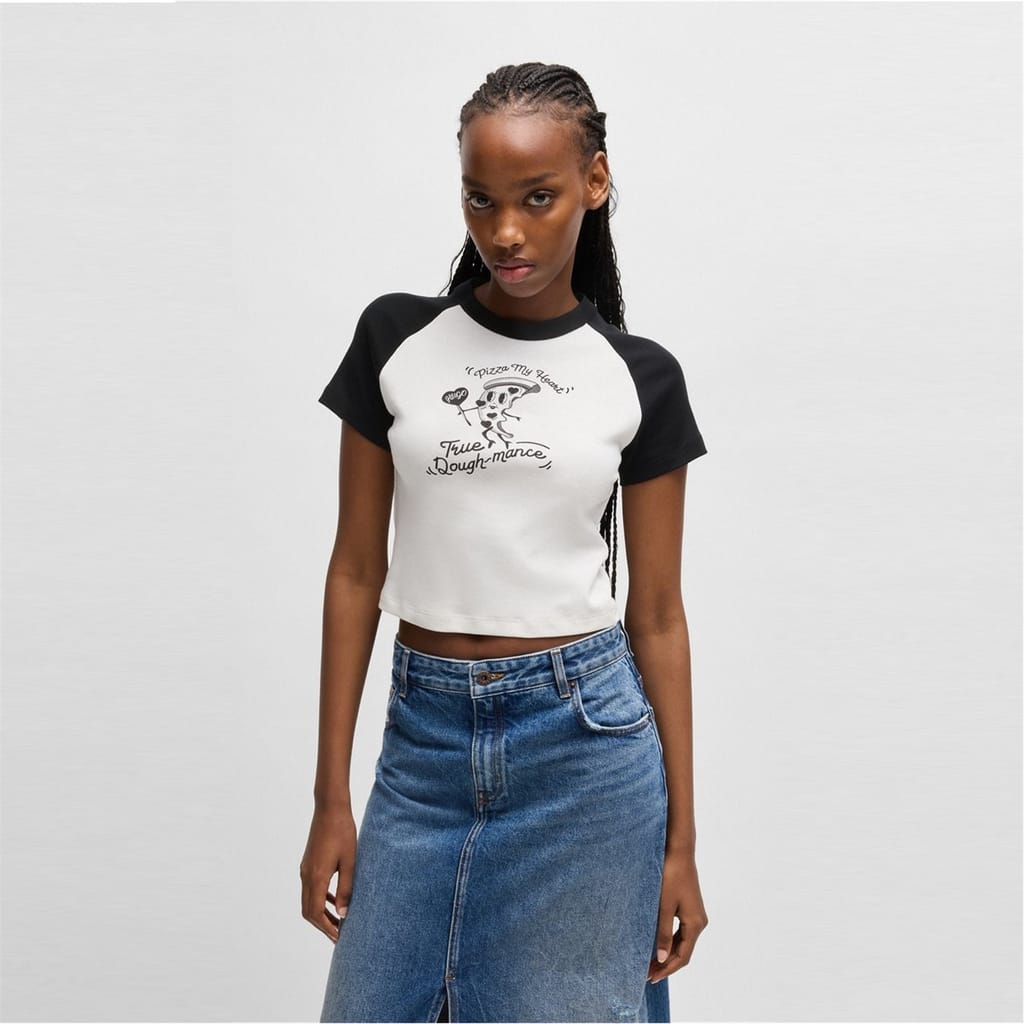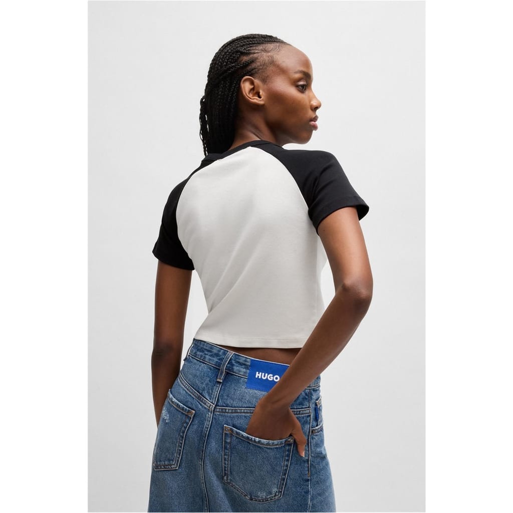 Discover the Hugo cropped top, a perfect addition to your casual collection. Featuring a crew neck and relaxed fit, this top offers comfort and style. The graphic print adds a modern touch, while the logo embellishment subtly showcases the brand's identity. Ideal for those seeking a blend of fashion and ease. -