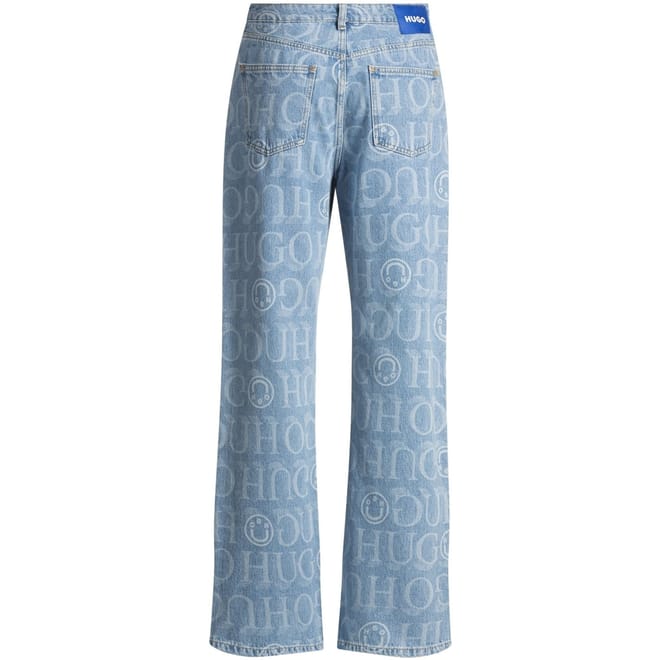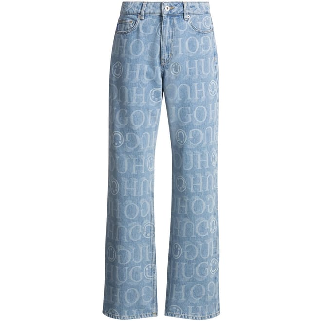 Discover the relaxed fit wide-leg jeans from Hugo, featuring a zip fly and button closure. These jeans are designed with a wide leg cut, offering a comfortable and stylish fit. The subtle logo embellishment adds a touch of brand identity, making them a versatile addition to your wardrobe. -