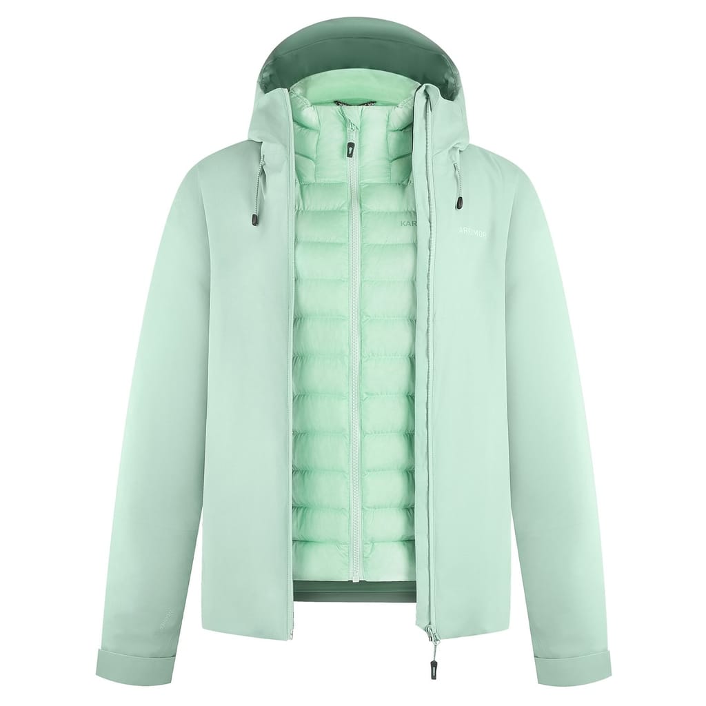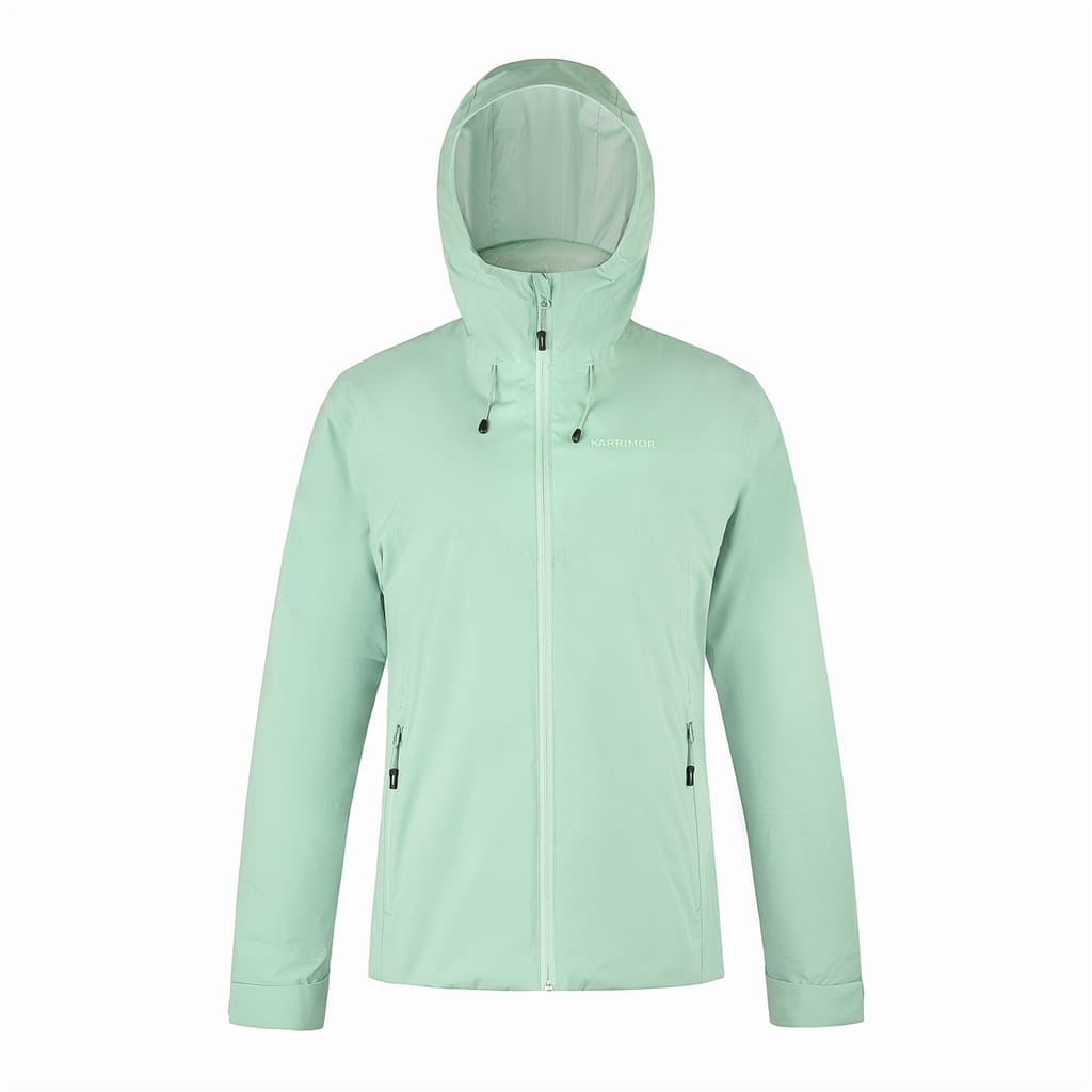 Discover the Karrimor Three-in-One Jacket, designed for walking enthusiasts. This regular-fit puffer jacket features a hooded neckline and a practical zipper closure with snap detailing. Embellished with a logo and pockets, it offers functionality and style. The elasticated cuffs ensure a comfortable fit, while the solid pattern completes its sleek look. -